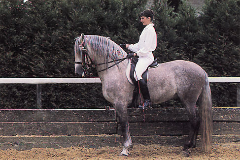 | Dire merci | Je considère l'enseignement comme un jeu vidéo... Si on voit un jeu vidéo, on rêve tous de "finir" le jeu, même si on ne sait pas à quelle sauce on sera mangé. Au fur et à mesure des "level", on se dit "c'est impossible" et quand on passe un level, on est très fier. Les photos que j'ai montrées vont dans ce sens: ce sont des "level" abordables. Il est parfois décourageant de voir l'Himalaya et de se dire "à mon âge/à mon niveau/avec ce cheval/dans ses infrastructures/sans prof/... je n'y arriverai jamais". Après, le vrai travail du pédagogue, c'est de dire "ok, tu es arrivée à ce level, voici la suite du programme". Pour revenir à la photo de Tessa, certes le dos n'est pas tonique, mais l'arrêt est en équilibre et je voulais souligner aussi par cette photo la détente des rênes. C'est, pour moi, le premier "level" a obtenir pour raphaella en fonction de son niveau et du travail à faire sur le cheval. |