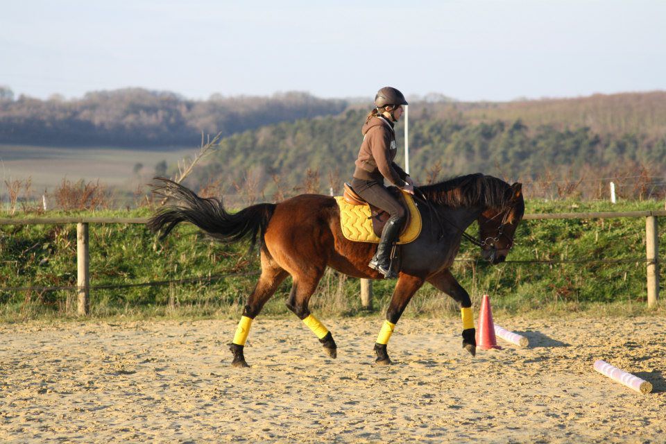| Dire merci | D'accord aussi avec frisonnette , tu peux commencer par ce que je t'ai écrit ce qui t’amènera vers les exos de frisonette.Moi pour le moment je ne galoperai pas monté, mais je travaillerai les transitions "justes" soit les départs en les préparant, les demandant, et hop transition descendante à la longe ou en liberté. cela renforcera ses reins. mais il faut du temps pour tout cela. On l'écrit en 3 paragraphes alors qu'il faut des semaines voire des mois pour arriver à des résultats, donc patience et encore patience. Si tu le peux filme toi et regarde le vous que vous formez ![]() |