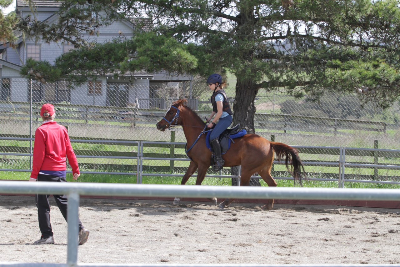 Déconnecté | Autant j'aime bien l'attitude de la jument sur cette photo autant en effet sur ma position on peut largement discuter... sur la pointe des pieds, pieds pas trop parallèles au cheval non plus, et je passe sur les épaules voutées ou les bras trop en avant... |