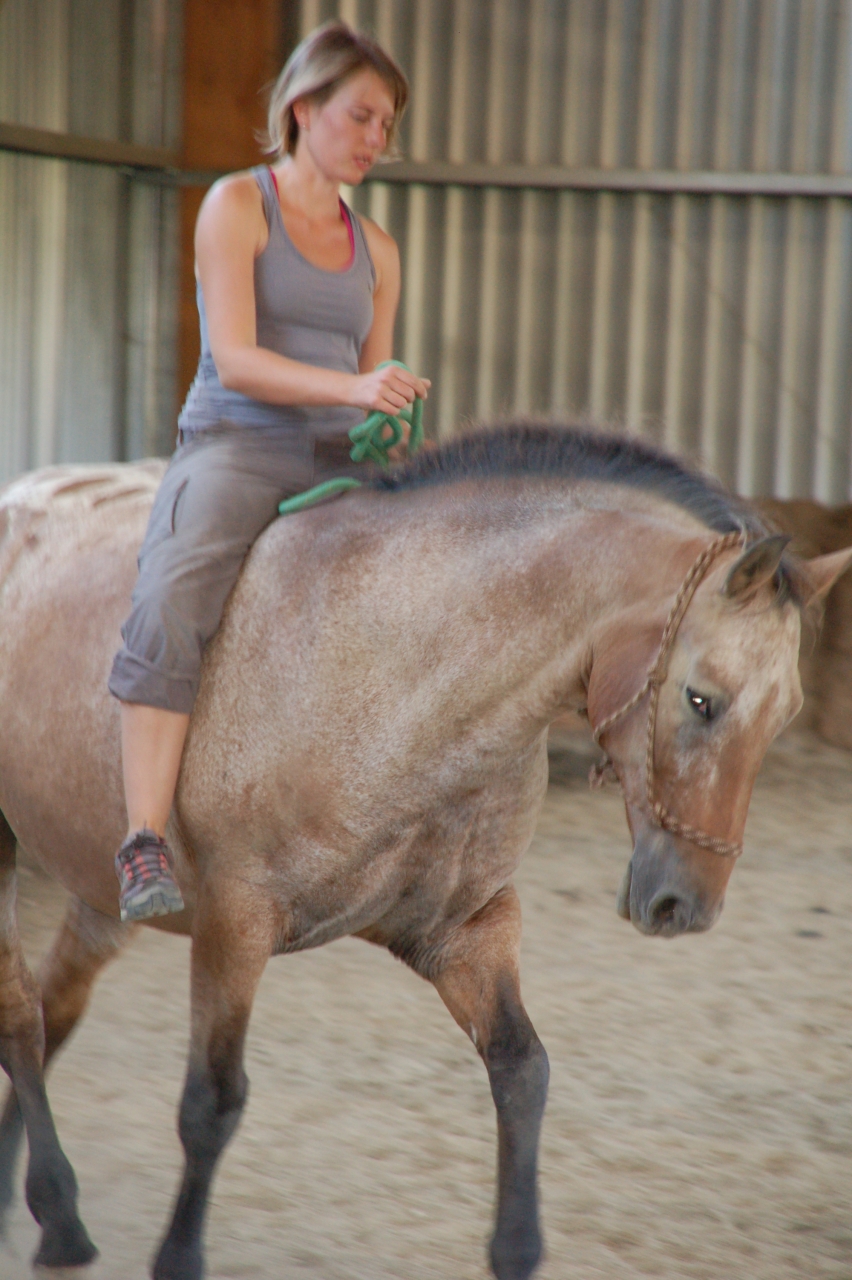 Déconnecté | Ecoute je trouve ça plutôt pas mal! Et effectivement sa m'éclaire un peu pour le fait quelle pèse et j'en revient a ce que j'ai écrit en haut, il faut que tu lui apprenne a ce tenir toute seul : demi-arrêt a chaque fois quelle se essaye de ne rien faire^^ parce que quand elle veux baisser la tète c'est quelle veux marcher comme au prés, mais on est bien d'accord que tu lui demande du travail, donc comme je t'ai dit apprend lui le demi-arrêt a pieds d'abords, tu doit lui demander de relever la tète avec une simple vibration sur les rênes et vers le haut des qu'il répond tu cède et récompenses, et ensuite la même chose a cheval et a chaque quelle essaie de s'endormir un petit rappel! Je vient de penser qu'il y a une super vidéo de Phillipe Karl qui peux t'aider et qui va l'expliquer beaucoup mieux que moi c'est l’élévation d'encolure par des demi-arrêts, tout avec ta jument va te paraître plus simple et plus agréable autant pour elle que pour toi, c'est comme apprendre a quelqu'un a porter du poids en fléchissant les genoux!=) |