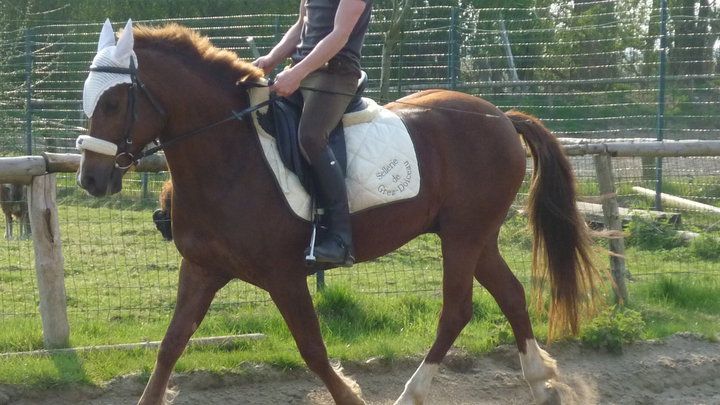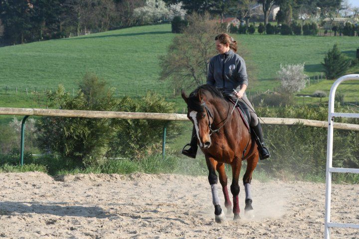 | Dire merci | c est pas faux il y a un juste milieu du coup j ai eappé la photo demain j y pense par contre on en a prise monté rien de sensas pas prisent au bon moment mais l anp avait du mal le soleil se couchait et du coup pas mal de tps d retard et j ai galeré la jument ete pas ortie depuis 4J un peu rebelle la jeunotte mais surtout j ai pri le stick et elle chauffe etc meme si je la touche pas a partir du moment ou je le prend elle s enerve , je pense du au reste du debourrage un peu a la maniere forte ( vu qu il s arrangait toujours pour faire ca quand j etais pas la les deux premieres semaines bref ) pourtant j ai bientravaillé sur la desensibilisation a pied je tourne la chambriere au dessus de sa tete elle en liberté elle bouge pas , je la claque elle bouge pas non plus . il faudrait que je le prenne de tps en tps qu elle s abitue , ju qu on commence a essayer des debuts d appuyers , elle a du mal encore a comprendre le stick c est pas mal pour a peine lui toucher derriere car elle traine les fesses malgré ma jambe |