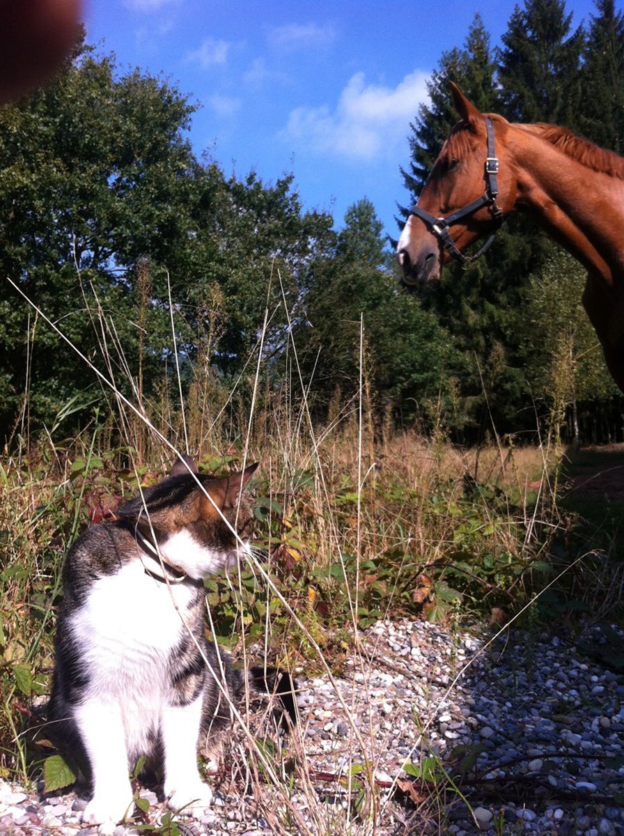 | Dire merci | pour changer, je suis aussi sur mon jaune des fois ... un joli flou, c'est pas coutume mon chéri qui fait l'effort (surhumain) de venir avec moi ![]() en liberté : ![]() avec chaussette le chat de l'écurie : ![]() |