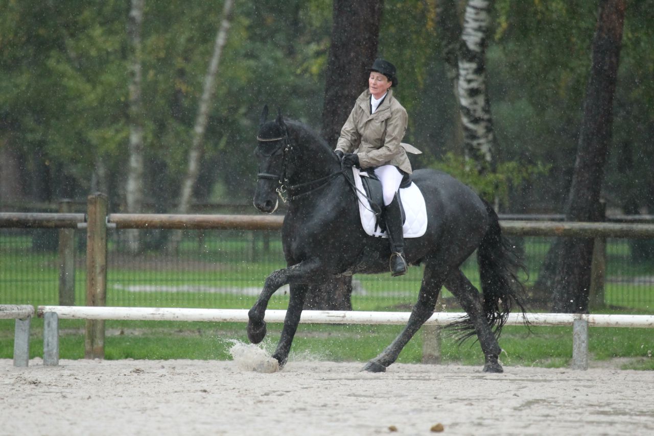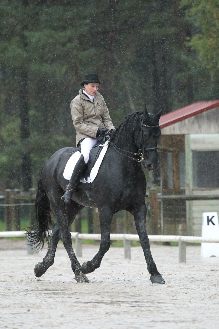 | Dire merci | Wahou frisonette il est vraiment très beau ton noireaud !!! J'adore ! Tes photos me rappelle la finale des championnats de France de dressage à Vidauban en 2010. Lors de la Khur le dimanche il pleuvait des trombes d'eau, tellement que lorsque j'ai déroulé je ne voyais absolument pas les lettres dans la carrière et ça faisait tellement de bruit (l'eau qui tombait sur le sol, les bâches...) que je n'entendais pas ma musique ... du coup j'ai fait toute ma reprise au feeeling 2 ans après ça reste un souvenir drôle et cocasse, même si je ne comprend pas bien comment les juges ont pu nous noter vu qu'ils n'y voyaient rien !!!! Mais comme toi, le soir ce fut un vrai soulagement de mettre mon gros au sec dans son box et moi au sec sous ma couette ... et puis ça fait des souvenirs ![]() |