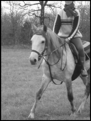 DéconnectéDire merci | La martingale est non seulement insuportable à utilisée (elle tire les rênes vers le bas, donne une action indireste sur la bouche, dès que tu veux reprendre, tu enferme la tête... Mais en plus a une action enfermante et enroulante. Regarde sur la photo : si tu tires sur les rênes pour faire agir la martingale (car précisément sur la photo, le jument ne la sent pas tant mieux pour elle )cela lui ramène le nez en bas, certe, mais surtout vers le poitrail (et là, on est en direction de la rolkur peut être loin, mais dans ce sens)Sur cette deuxième photo, la juliette a une attitude correcte, ouverte d'accord, mais bien orientée. en la laissant dans une attitude semblable et en la mettant sur des arcs de cercles comme je te l'ai conseiller plus tôt, elle devrait finir par s'arrondir, d'abord un quart de seconde, puis de plus en plus longtemps ... Par contre, tu auras peut-être besoin de prendre un peu plus sur tes rênes... Mais sans martingale ! "je sais que vous allez me hurler dessus" Ben non, juste t'expliquer que ce n'est pas génial ! "le marchand chez lequel je l'ai acheté m'a conseillé d'en mettre une ." tu m'étonnes ! c'est son boulot de conseiller ce genre de truc, et puis ensuite il va te conseiller des RA, puis un chambon, et puis le gogue, le PESOA... |