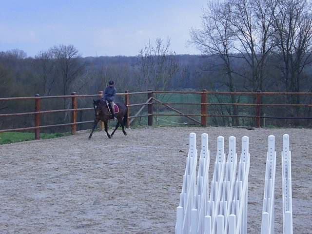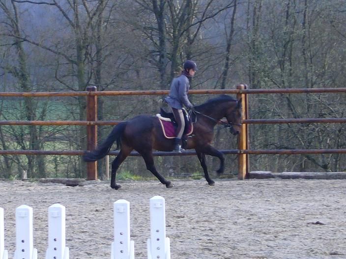 | Dire merci | merci pour vos reponse comme il ai cité plus haut grant a un soucis de cadence du moment que je lui laisse les renes. lorsque qu'au trot je lui descend la tete il consevre l'attitude deux foulée puis la remet a sa place et part dans un grand trot mega moche et super inconfortable ( merci les ascendances trotteurs )je ne saute malheuresement plus depuis mon galop 4... et je bloque meme sur des cavalettis cependant vous m'embrouillez quelques peu ! ok pour les renes allemandes, je les vires ! mais alors je dois l'etirer en principal c'est ça ? niveau dressage on bosse beacoup la mobilisations des epaules et des hanches, donc epaules en dedans et hanches en dehors au pas, cessions au trot et debut d'epaules en dedans au trot je precise que ce que je fais reste dans une attitude bonne, sinon je ne le ferai pas ! ci joint quelques photos pour vous donner une idée... |