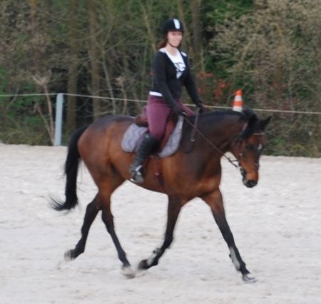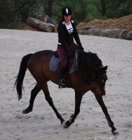 | Dire merci | il ne tracte pas du tout, il est meme très léger. Mais en regardant a nouveau les phototsn je me rend compte qu'on dirait qu'il me tracte! C'est peut-etre du à ma position désastreuse! Pour ce que est de galoper fort pour revenir ensuite au petit galop, c'est un exercice qu'okapi effectue très bien sans changer d'attitude! bien que j'ai un peu de difficultés a l'avoir devant moi.. |
