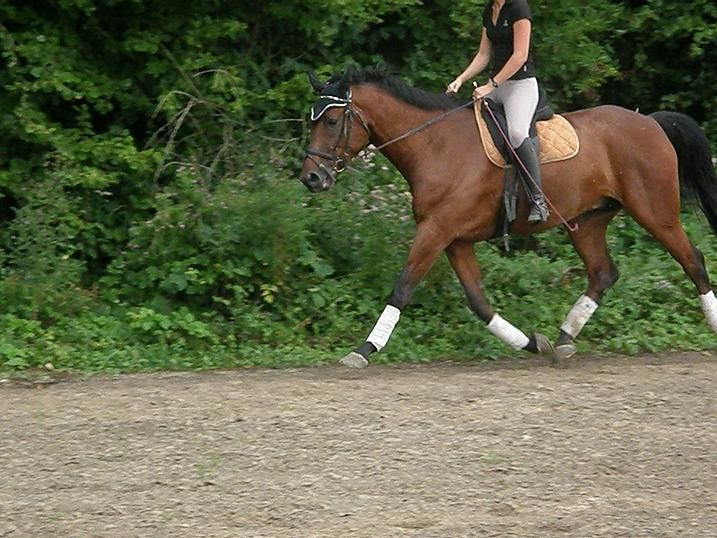 ). Au trot, il garde la meme attitude, toutefois avec quelques foulées irréguliere de temps en temps... Le galop reste son allure la moins travaillée, mais son équilibre sur les épaules et son encolure à l'horizontale ont nettement évolué vers un cheval qui se tient.