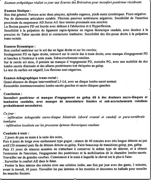| Dire merci | Quelque chose me tracasse... si il ne parvient plus à engager son postérieur droit, c'est qu'il y a soucis. Le forcer à l'engager est-il une bonne idée ? Ce que j'ai aussi du mal à comprendre, c'est que si il en engage un et pas l'autre... c'est qu'il boite non ? J'ai pas du comprendre le problème... |
