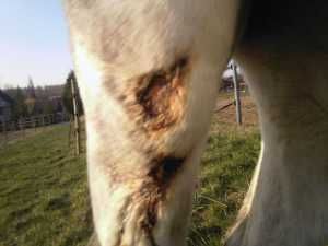 | Dire merci | Je fais ce post car ma jument s'est bléssée serieusement il y a de ça maintenant 10 jours et j'aimerais vos avis sur l'evolution de la plaie... Elle a fait une grosse chute dans un virage au grand galop alors qu'une amie etait dessus...sur un sol bien dur. Je tiens à preciser que le véto etait là 30minutes apres la chute, n'a pas trouvé judicieux de la recoudre et ne m'a pas donné d'antibio... au debut très surprise qu'il n'en donne pas mais ça a l'air d'aller comme ça et puis il s'y connait en chevaux ![]() Elle a donc 5blessures sur le coté gauche dont 2assez impressionnantes. Elle a été vraiment très engorgée et boiteuse ( elle marchait sur 3pieds en gros), à l'heure actuelle elle est toujours un peu raide et est gonflée au niveau du boulet+bas du canon mais elle marche sans souci, elle vrille juste un peu au niveau du posterieur touché. Elle est mise au paddock la journée+ environ 30 minutes en longe dans la foret à pied. Je lui administre une douche froide matin et soir sur les membres, en massant bien le canon et en nettoyant à la betadine rouge lavante. Je mettais jusque là de la betadine jaune a l'aide d'une seringue mais je suis passée au cothivet, est ce un bon produit? la bonne démarche à suivre? Dois je m'inquieter pour le boulet et haut du canon qui est gponflé ou est ce normal (sachant qu'elle a une petite plaie sur le boulet) La venue d'un ostéo est je le suppose souhaitable, je vais bientot en contacter un pour qu'il vienne avant que je ne la remonte.. La question que je me pose est quand le faire venir? tout de suite? une fois que la plaie sera refermée?cicatrisée? Combien met une plaie telle que celle ci à bien cicatriser?(sachant que c'est une pur sang anglais à la peau fine?) Merci beaucoup , désolée pour toutes les questions la premiere photo que j'ai, c'est la plaie du dessous, beaucoup de poils venaient sur la plaie, et ça supurait vraiment jaune ![]() On voit bien que ça sointe, c'etait une heure apres les soins... ![]() au bout de 10jours, elle commence a trottiner et surtout se roule, je pense que c'est bon signe. Fin des antiinflammatoires ce soir... ![]() |