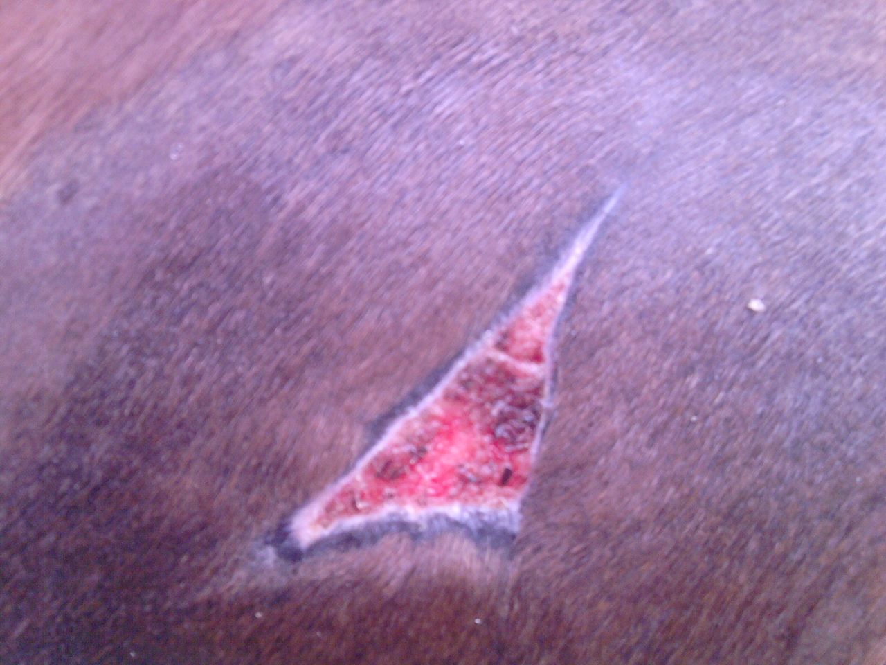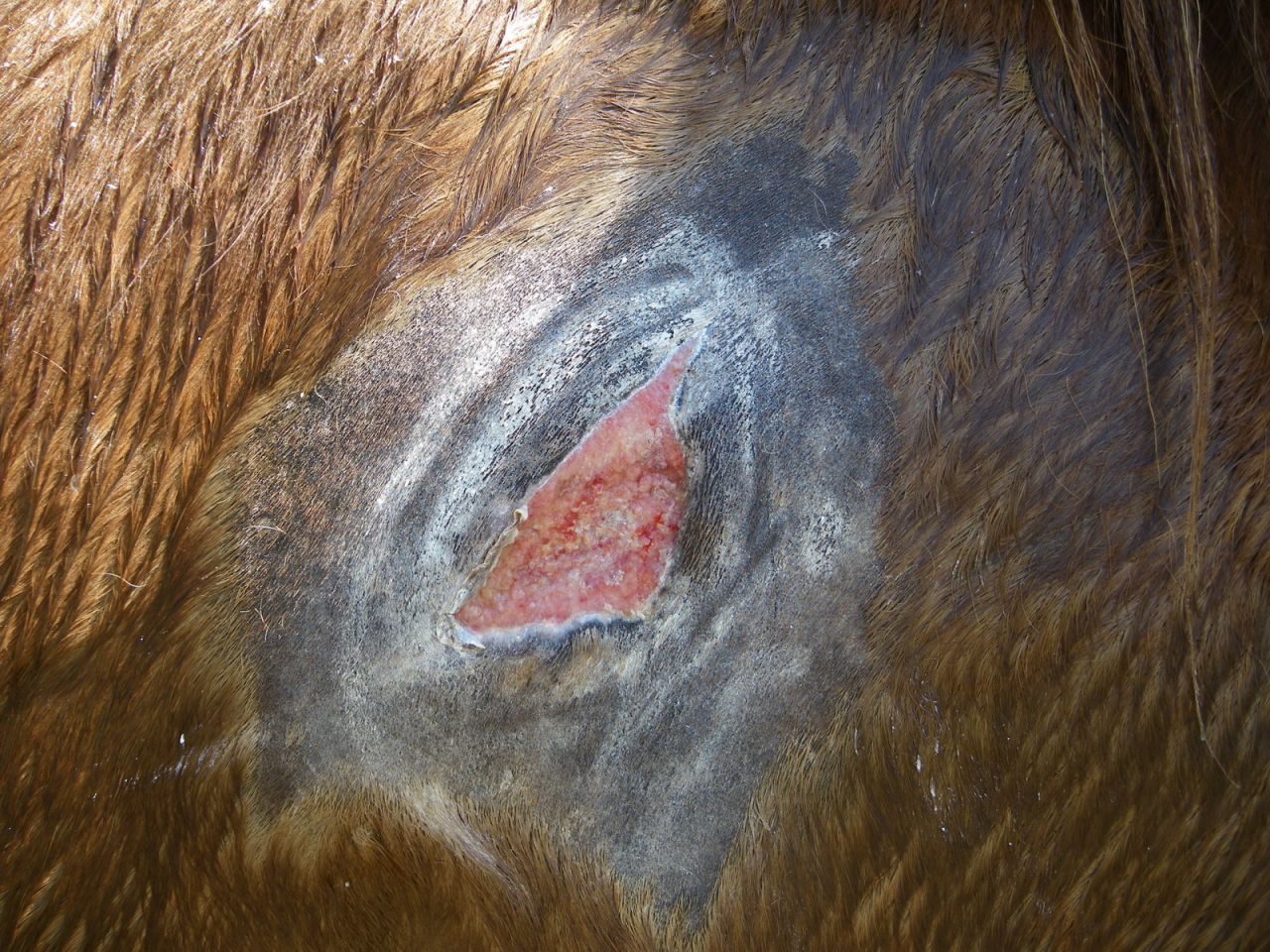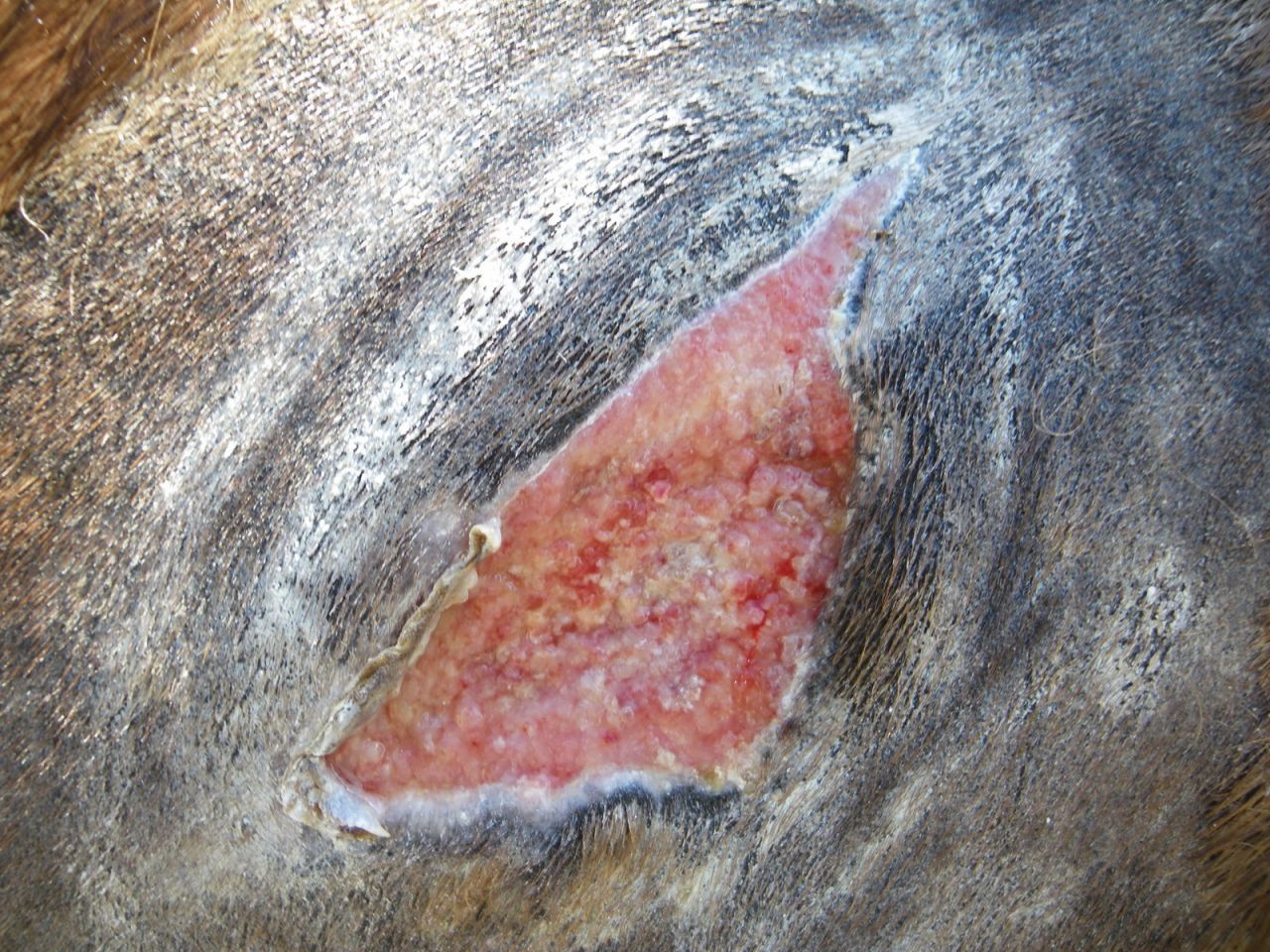 | Dire merci | bonjour , voila ma jument c'est fait une plaie ouverte en s'appuyant sur une porte elle s'est acroché avec le verou ! [url=https://www.1cheval.com/membre/services/photos/] [img] Le veterinaire est venu pour lui faire des points de suture mais ca a pas bien tenu , du coup c'est des soins tous les jours. Le veto m'a dit de bien froter pour enlever les peaux mortes mais là il y a une sorte de tissu blan qui s'installe et je sais pas si il faut que je l'enleve parce que j'ai essayé de l'enlever mais ca redevient rouge ! |