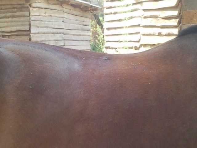 DéconnectéDire merci | Voilà depuis quelques mois ma juju a une espèce de petite boule fibromateuse sur le côté droit de son dos proche de la colonne vertébrale... D'après le véto et des cavaliers chevronnés.il semblerait que ce soit dû au frottement de la selle... Evidemment j'utilise un tapis.... Qui a déjà connu ça.... Que dois je faire ? Je viens de changer de selle.... Y a t il un traitement pour l'éradiquer ? Ou est ce que cela va évoluer ? [imhttps://www.1cheval.com/membre/services/photos/images/69355.jpgg][/img] |