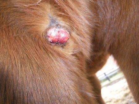 DéconnectéDire merci | sur ce type de sarcoïde, j'ai traité une jument pendant 15 jours avec du sulfate de cuivre en poudre mélangé à de la vaseline 2x/jour. le sarcoïde est devenu noir et a disparu au bout d'1 mois. Tu peux mettre un peu d'aloe vera dans la nourriture pour accélérer le process. |