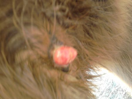 | Dire merci | En fait j'ai vu aucune amélioration pendant plusieurs semaines. En une semaine, le sarcoïde mère a gonflé, saigné (comme sur les photos) et s'est rétracté et est devenu tout sec. Ca fait 3 semaines qu'il sèche et je pense qu'il ne va pas tarder à tomber (enfin j'espère). Après, il y a plusieurs sortes de sarcoïdes et je pense qu'ils réagissent tous différemment. L'élastique, on ne me l'a pas conseillé : ça repousse puissance 10 après ça. |