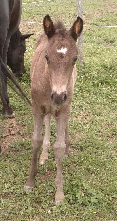 | Dire merci | Futur gris, Riri est née pareil. Il s'appelle Cuzco, le poulinage s'est vraiment bien passé, ils ont aidé le poulain a sortir juste pour pas que la jument se fatigue trop. ce qui est énorme c'est que quand il tète, Riri rentre son ventre pour qu'il puisse accéder facilement aux mamelles elle a un instinct maternel irréprochable, je suis impressionnée On est passé la voir aujourd'hui, elle baillait un peu vu qu'il tète pas mal ^^ |