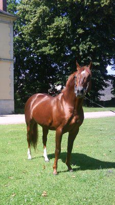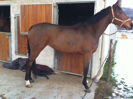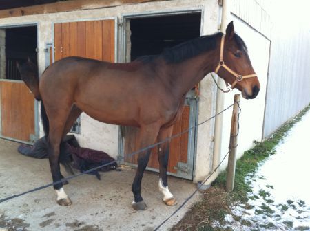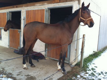 | Dire merci | je compte mettre ma jument SF à la saillie mais j'ai du mal à choisir l'étalon, j'ai besoin de votre aide ![]() pour situer : Ma jument est donc une SF de 4 ans par Far west de baugy et sa mère est une trotteuse. C'est une jument sympa mais très active monté et avec un poils de caractère quand même. Elle est toujours en avant, a une bonne galopade, une vrai action mais pas un trot formidable. Question physique j'ai du mal à dire ses défauts je lui trouve une encolure bof bof et surtout un dos un peu long et très rigide. maintenant ce qui je souhaite surtout c'est un étalon posé, je ne veux surtout pas ramener de sang je trouve qu'elle en a déjà assez et forcément qui corrige ses défauts. Question saillie j'ai un budget de 600 € hors frais technique. j'ai repéré trois étalons mais je veux bien d'autres propositions : - Gitan de la cense - Double d'elle - Happy vergoignan (mais j'ai un doute déjà question sang et surtout ils ont le même grand père : Laudanum) ma juju : (au plus ou moins modèle )![]() là elle se tiens loin derrière elle des postérieurs mais c'est qu'elle regardait au loin ![]() ![]() ![]() |