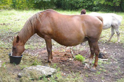 Déconnecté | Merci Mimine ! Je pensais qu'après une dizaine d'années il pouvait y avoir des risques Mais apparemment non ! D'autant plus que oui elle est en bonne santé ! Son physique habituel bah c'était "normal", ni trop grosse ni trop maigre, bien enrobée sans être grosse quoi ( pas comme maintenant !). Niveau nourriture c'est 2 tradimel matin et midi et le soir du foin, car elle est en club pour le moment (je dois la mettre en pâture toute l'année prochaine). |