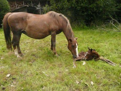 | Dire merci | quand le creux des hanches se rempli...........c'est que le poulain s'engage (env une semaine avant la naissance) il est possible que certaines juments aient des chaleurs jusqu'en octobre ce qui fait que le poulain arrive en septembre mais des mises bas fin d'automne, ça non pas avec des saillies naturelles. il y a des juments qui ont des chaleurs en plein hiver,même à l'état naturel si le poulain est assez costaud et que sa mère trouve suffisement à manger,il survivra,sinon,advienne que pourra. |