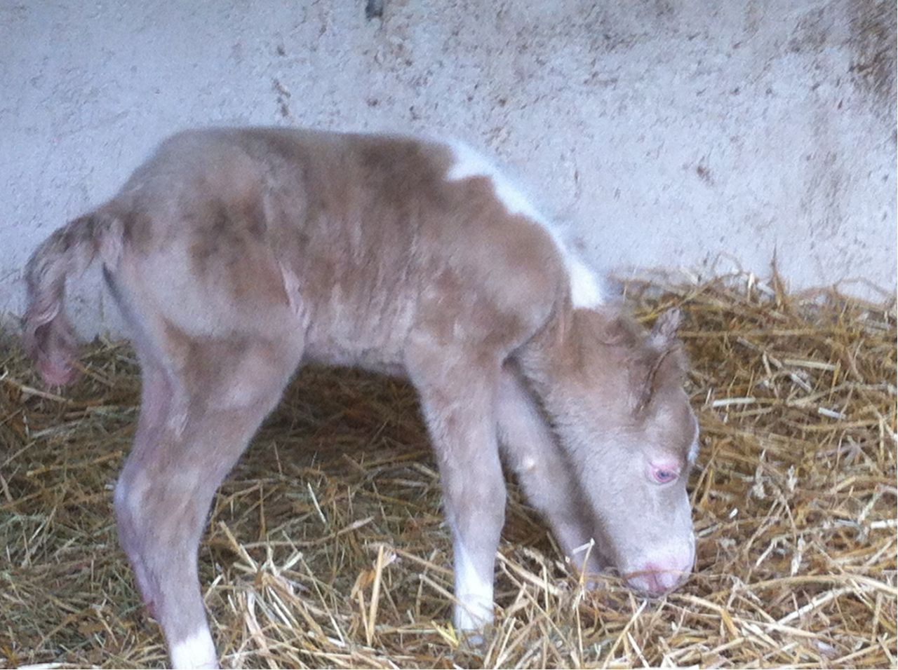 | Dire merci | en effet pas d'allele créme théoriquement chez l'arabe! alors je vois plusieurs hypothèse possibles, mais voici les principales: - le père est sabino (ce qui est assez courant chez les arabes), la pouliche peut etre sabino extreme ! - le père n'est pas le père, mais théoriquement pour une dsa on fait un génotypage, non ? - le père est bien porteur de creme, avec une mere porteuse de creme ou champagne, la pouliche peut avoir une double dilution ! ...etc j'en ai d'autre en tête mais moins probable! serais-t-il possible d'avoir une photo de la pouliche |