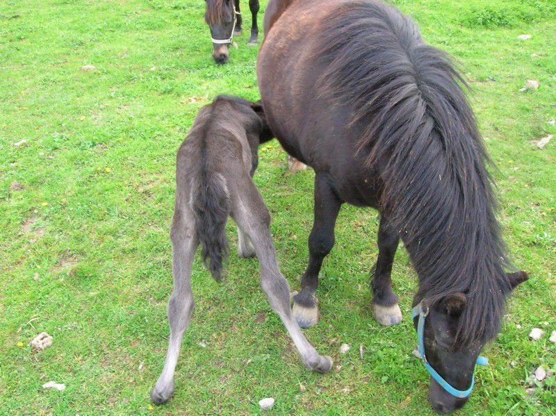 | Dire merci | bon beau pere a une naissance cette année, assez improbable, jument pottock 1m15, papa breton PP, 1.65 au garrot et le beau modele, mr c'etait echappé, bref la petite est né sans aucun soucis elle est toute minus, enfin a la naissance, parce que la elle a 15 jours et je sens que la maman sera assez vite ridicule a coté mdr |