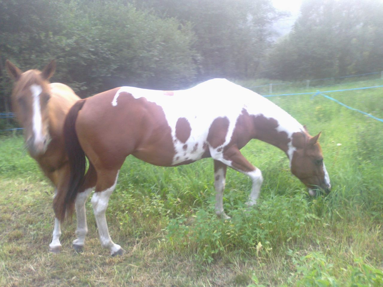 | Dire merci | Bon alors, ji suis aller les voir hier soir ! elle n'ont pas maigri plus que sa ! elle sont toujours aussi nerveuse, plus moyens de leur faire un bisous, de les caressé, elle fuit le contact, essaye de taper ...bref.. vous voyez le genre.. La moitié du terrain qui est encore en herbe, est remplis de luzerne !!! jai pas de photos, mais j'essaye d'en prendre une ce soir. le reste, ou elle ont deja manger, et a la limite de la terre. la proprio ouvre toujours une petite partie le matin, et cest tout. mais elle ne maigrisse pas. donc a croire que sa leurs convient.. |
