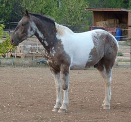 | Dire merci | oui enfin bon, l'appaloosa ça se croise pas comme ça de toute façon. Tu ne peux pas mettre n'importe quoi, déjà faut privilégier les dos assez courts, et mettre de la cuisse allongée et de l'épaule si tu ne veux pas te retrouver avec une trottinette. (et y'a pas à dire, ce mélange de patron non, décidemment je ne m'y fais pas. Le gène roan ça gache completement le pie qui est bien plus joli avec des taches bien définies et contrastées) |