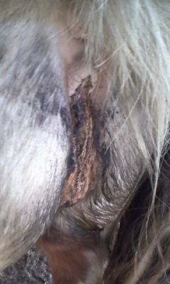 | Dire merci | Bonjour, J'ai remarqué ce matin en sortant au pré ma ponette qu'elle avait des traces de crottin "liquide" sur les jambes (voir les photos). J'ai demandé conseil à mon voisin agriculteur qui m'a dit de la rentrer au box et de la laisser à la paille (elle a d'habitude accès au foin de son box) car nous avons changé le round-baller il y a moins d'une semaine et il est un peu vert (peut être la cause du problème?). Nous avons attendu qu'elle fasse son crottin pour voir ce que ça donnait; d'abbord un peu liquide, puis une ou deux crottes dures mais pas plus.. Sachant que cet été elle a passé un mois avec un étalon dans le but de la faire saillir et nous allons bientôt faire une prise de sang pour savoir si elle est pleine (peut être un rapport?). Mon voisin m'a dit que nous allions attendre qu'elle passe la nuit et si demain ça recommence nous allions éventuellement donner des médicaments qu'il utilise pour ses vaches dans le même cas. Est-ce une bonne idée? Sinon que devons-nous faire? Pouvons-nous la faire travailler (travail à la longe) ou devons-nous la laisser au box? Ou au pré? Merci de vos réponses, Hermes35 Voici les photos: ![]() ![]() |