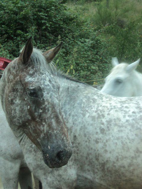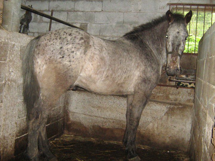 | Dire merci | Alors, j'aurais besoin de savoir quelle robe a mon cheval, dans ses papier sil ya écrit gris, mais fait est qu'il n'est PAS gris. Bai tacheté? présence d'un gène Sabino? honnêtement je n'en ai aucune idee... Quelques infos: Picasso: né bai rouanné (quelques poils blancs mélangés discretement aux poils marrons) avec une jolie cape blanche (parsemé de petites taches brun foncé). Sabot strié, peau noire, extrémités brun foncé. a la place des fanons il a une "mèche dorée". Le père: un joli léopard avec des taches bien délimitées noires et les crins blanc immaculé, sabots noirs, gabarit plutot fin avec une tête de poney . La mère: Ponette pie noire tobiano, tête entièrement noire, la robe a plus des parties noires que blanches. voici donc quelques photos pour illustrer : voici Picasso de la naissance jusqu'à 2an et demi: ![]() et voici après l'hiver, à 3 ans. complètement "rouan", extrémités toujours brun foncé, il a gardé les petites taches foncés sur la croupe aussi. ![]() ensuite, les taches marrons apparaissent, d'abord sur la tête... ![]() ensuite un peu sur le reste du corps d'année en année il y'en a plus. ![]() ici à 6ans en été. ![]() et voici à 8ans et demi à l'automne.. (robe proche de celle qu'il a maintenant à 10ans) ![]() ![]() ![]() j'ai envoyé un message aux Hn à l'instant avec des photos, mais sachant qu'ils vont pas me répondre avant quelque jours, j'aurai voulu savoir votre avis. quelqu'un a déja vu ce genre de robe? |