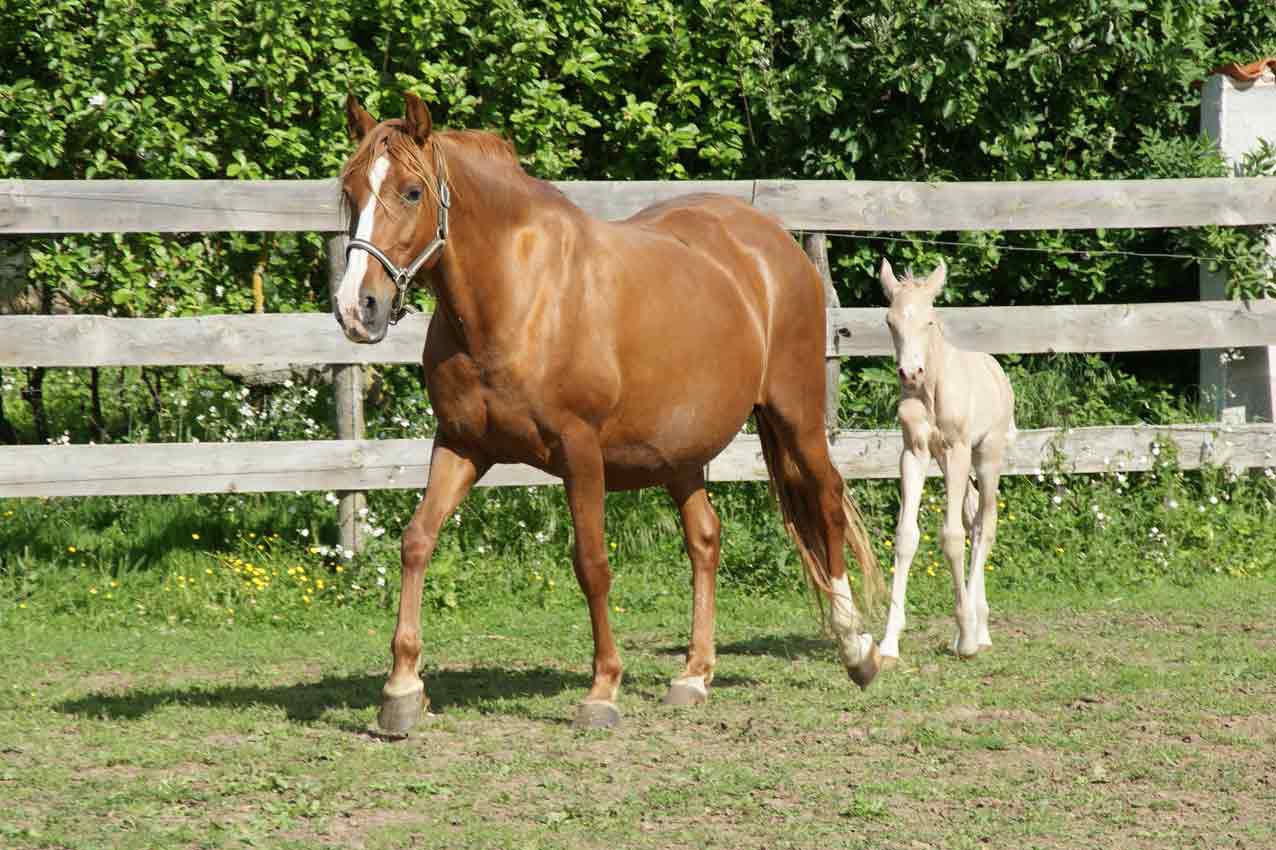 | Dire merci | Et pour fin avril une petite nouvelle SHANYA GRAF SPEE gestante de OSARIO le produit sera PP Race Crème de robe crème Alors la suprise je n'ai pas de photo à vous mettre il va falloir que j'en cherche de cette belle jument , suspence avant de pouvoir la voir . |