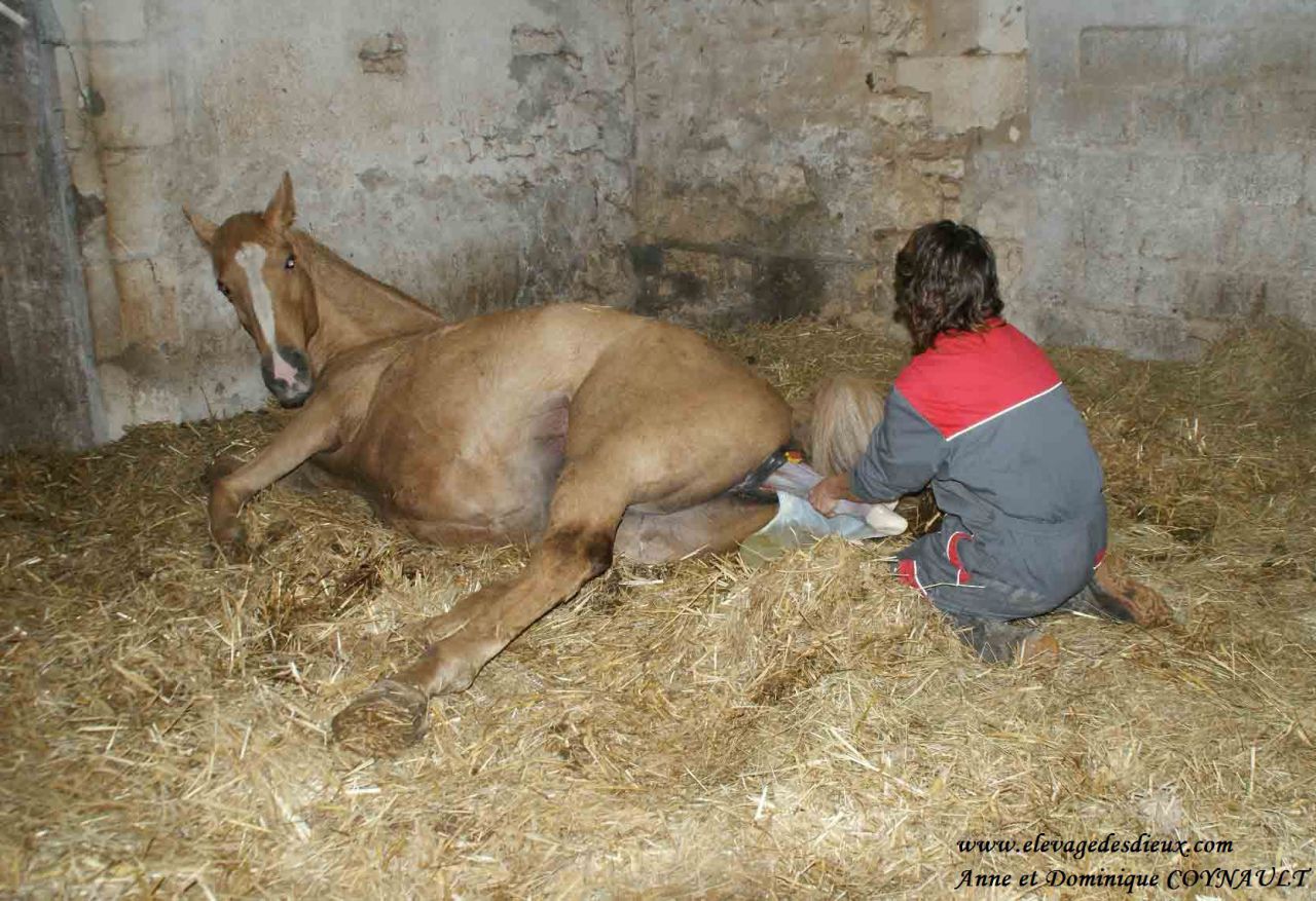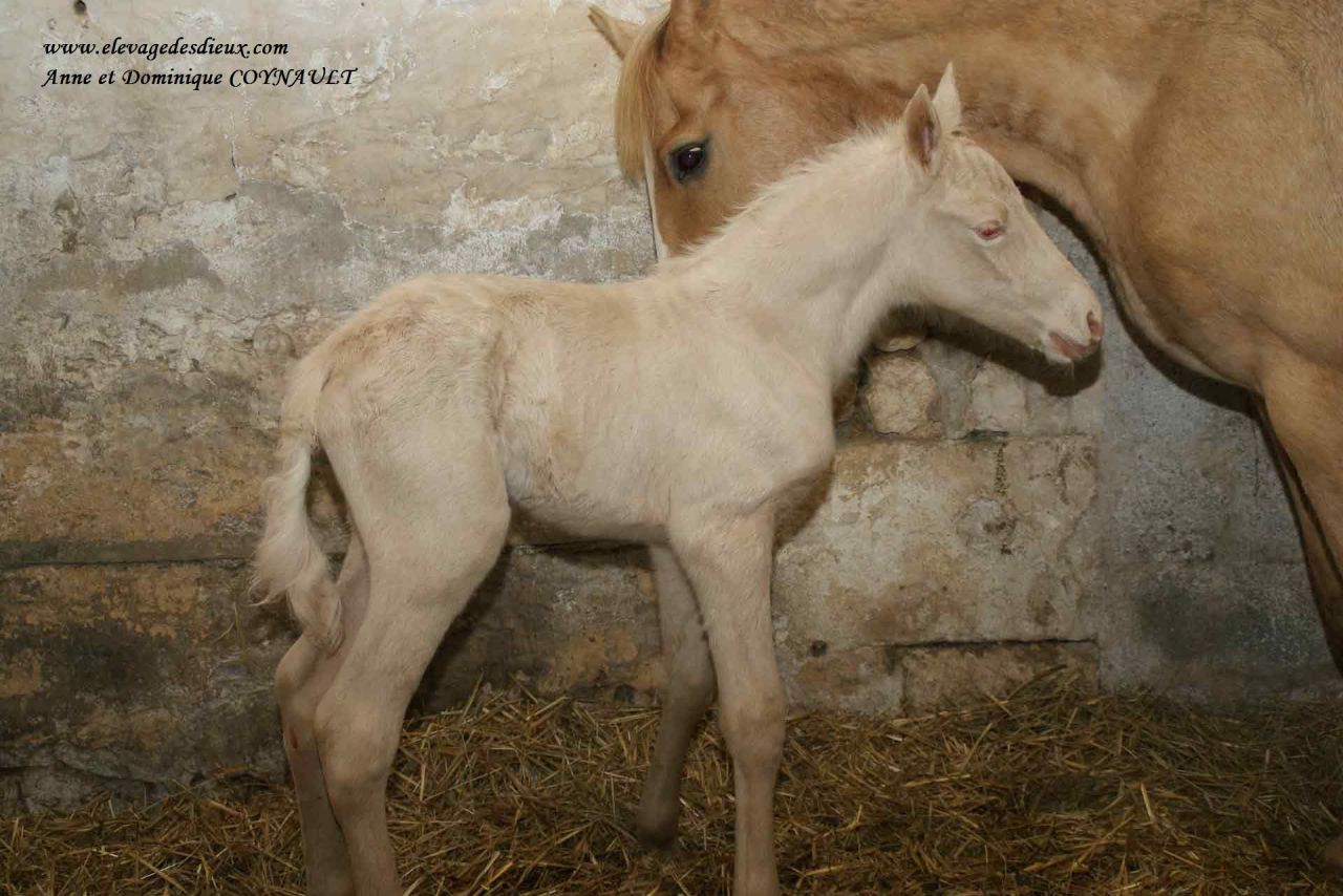 | Dire merci | Voici enfin , le 1er né de l’Elevage Des Dieux ,un mâle crème né à 23 H 21 ce lundi 11 mars , fils de TORUNHO PP Lusitanien de robe crème et de Morgane PP Race Crème de robe palomino , superbe poulain avec déjà une tête et une encolure très chic . ![]() ![]() |
