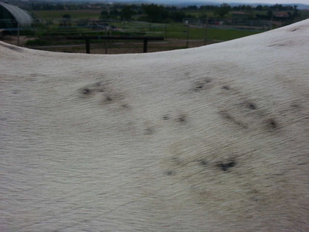 Déconnecté | Ca pourrait être des petites verrues ???.... Ce qui est marrant, c'est que d'après les photos c'est légèrement différent en forme entre le haut de l'encolure et le corps. |