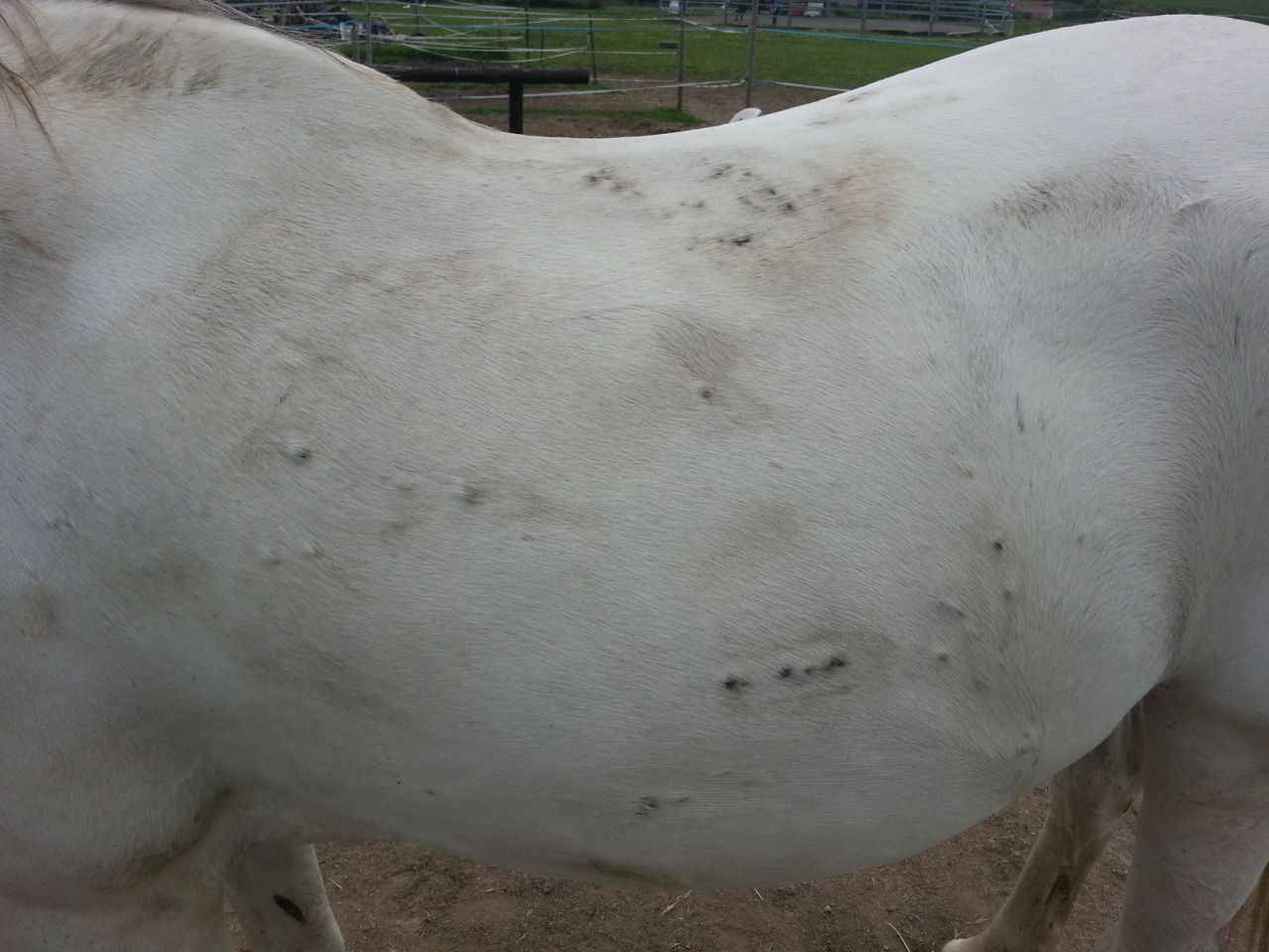 | Dire merci | Bonjour, Ma jument Pur Sang Arabe a pris plein de boutons depuis plusieurs mois et je n'arrive pas à savoir ce que c'est et comment la traiter...Est ce une allergie à une herbe dans le pré, un insecte,...? J'essaie pour l'instant nettoyage à la bétadine + crème cicalfate (d'Avène) mais pas trop de résultat... Le véto ne sait pas trop ce que c'est. Je ne pense pas que ce soit de la teigne car pas de dépilation autour des boutons. Ils sont sous la peau et gonflent plus ou moins. ci joint photos. ![]() ![]() ![]() ![]() Quelqu'un a une idée ? |