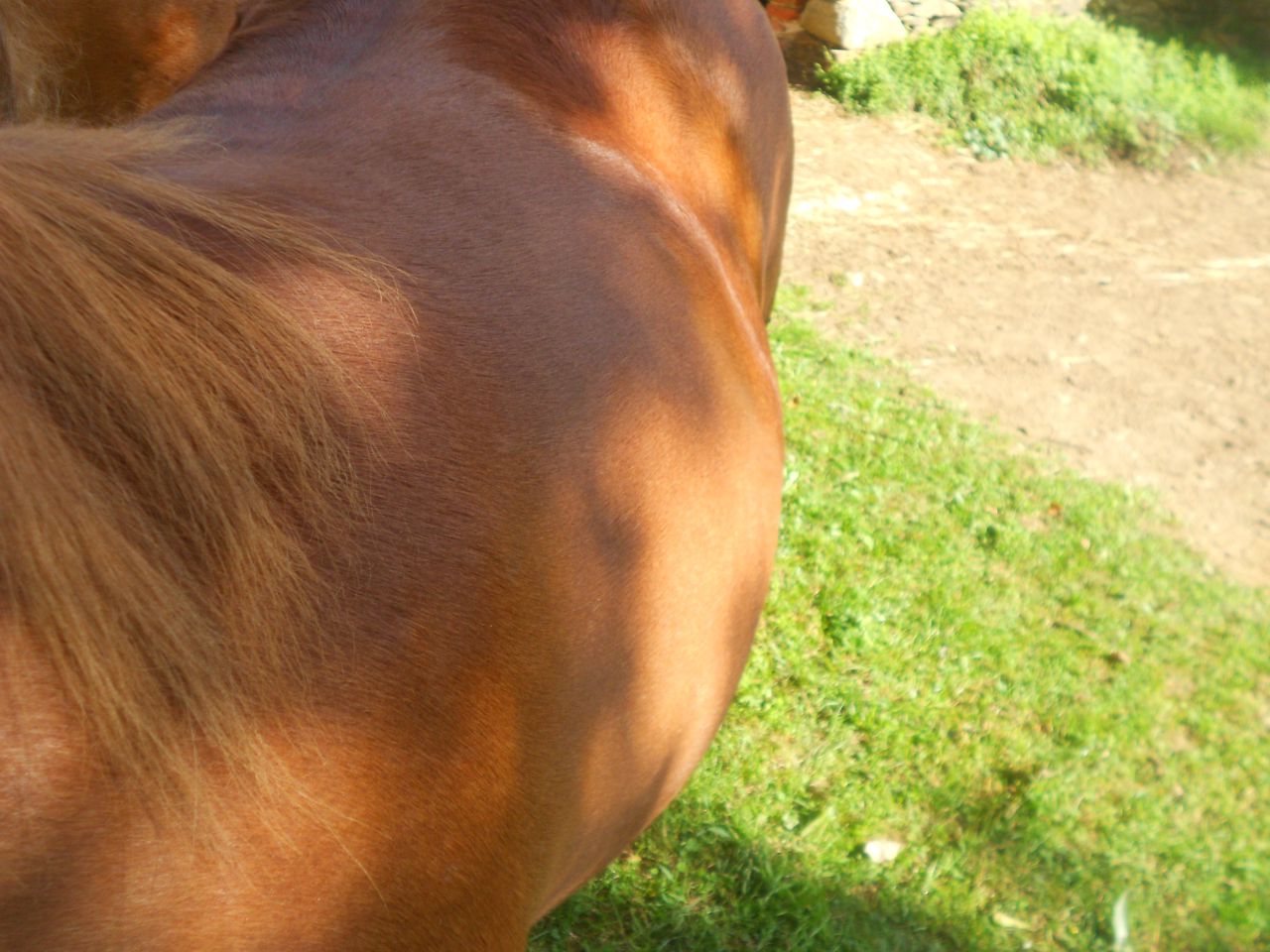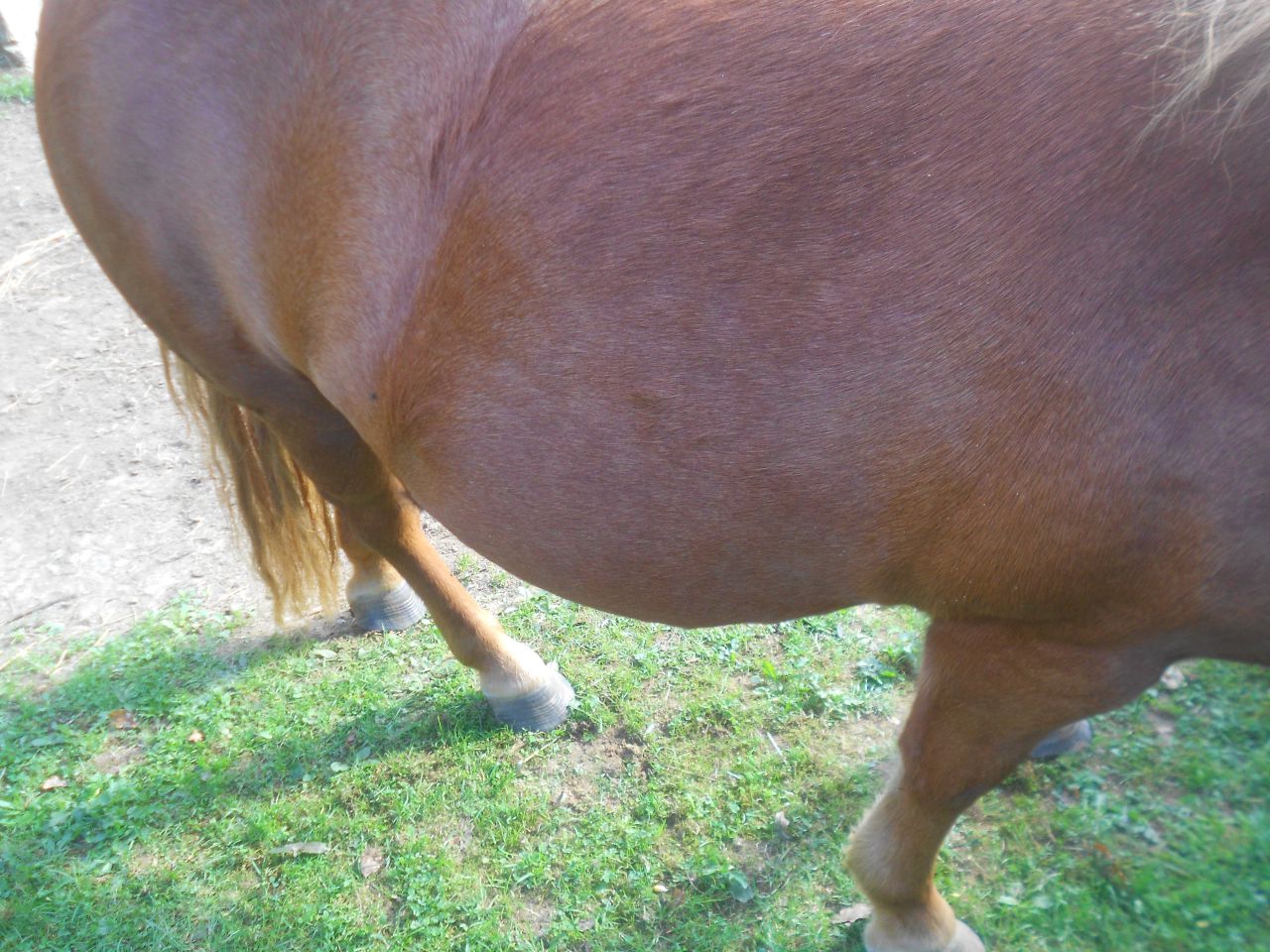 DéconnectéDire merci | Oui j'avait déjà réussi a la mettre en régime dans une pâture moins grande mais temps donner qu'elle est avec un autre cheval et qu'il ne veut pas rester tout seul il est donc avec elle dans un parc mais ses proprios ne les ont pas laissé longtemps 3-6 jours max alors ça n'a servi strictement a rien ... et sans leur autorisation je ne peut pas faire grand choses a part lui éviter les friandises en trop .. Et si elle est pleine (ce qui vous parez bizarre) que serais le danger pour elle et son poulain ??? PS : Je poste une meilleure photo pour s'eux qui voulaient, le plus vite possible... |