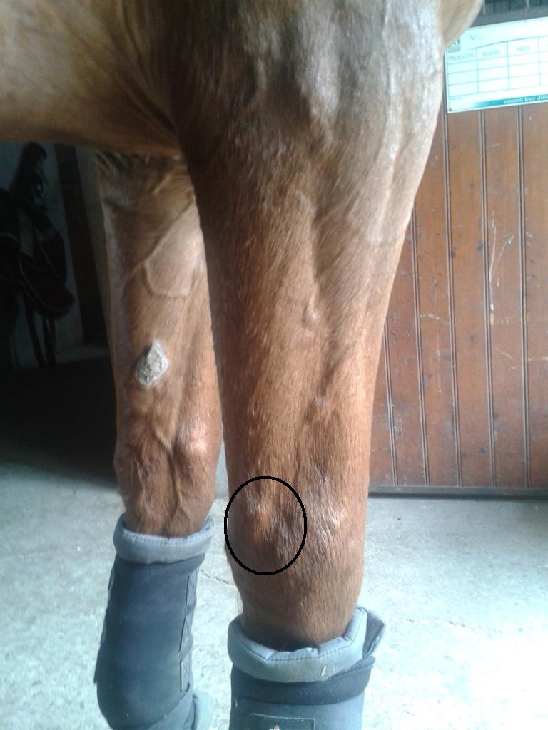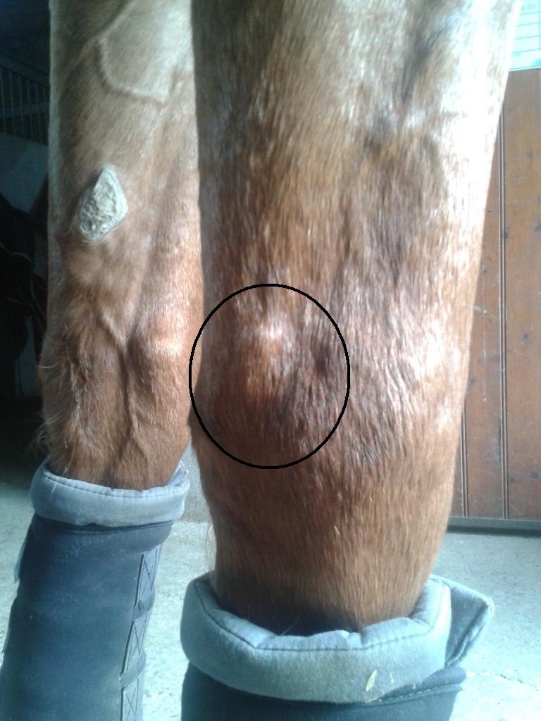 | Dire merci | Bonjour, Depuis quelques jours, mon loulou possède une boule plus ou moins dure par moment entre l'os pisiforme et le devant du genou de l'antérieur droit. Précédemment, il a eu une fissure de l'os pisiforme du même antérieur, il y a 1 an et demi, qui s'est calcifié depuis. Il est sortie tous les jours au pré, soit en balade, ou sur le plat. Travailler maximum 3 fois par semaine de 30min. Il a 18ans, 1m83 et très en forme malgré son âge. L'apparition de cette boule m'inquiète un peu étant sur son membre déjà accidenté. Certes il ne boite pas et peut être manipuler sans de signes de douleur. Au travail comme en balade, pas de gonflement ou de gêne. Je penche sur un vessigon articulaire ou tendineux et je n'arrive pas à faire un diagnostic concluant.. Afin de savoir comme le traiter correctement et si ça peut s'aggraver. Alors si vous en avez déjà vu ou si votre cheval en a et que vous savez ce que s'est.. je suis preneuse de toutes réponses qui pourrait m’éclaircir dans mon diagnostic.. Je vous envoie les photos pour plus de précision. ![]() ![]() Merci d'avance à tous =) |