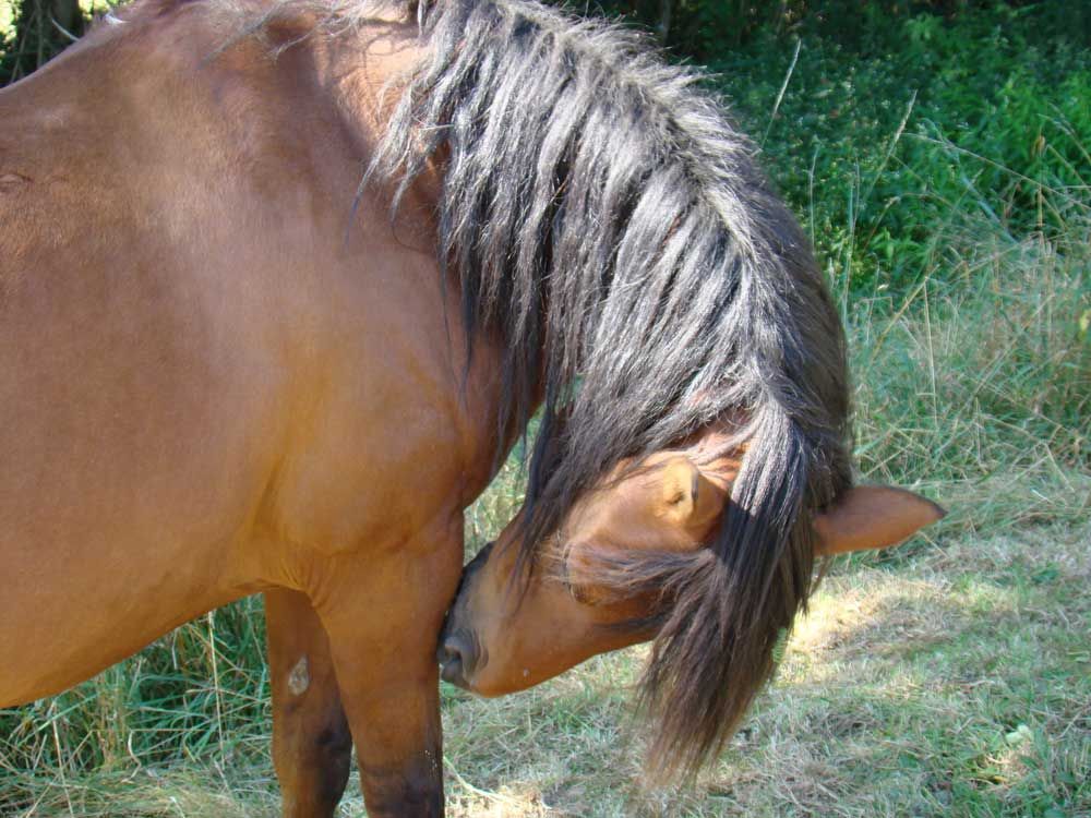 | Dire merci | jeny ta jument est ronde comme un "cheval de pré" un peu plus d'exercice régulier son bidon devrait remonter un peu ! Pour l'orge j'ai pas les compétences pour t'aider mais nous on donne rien ! |