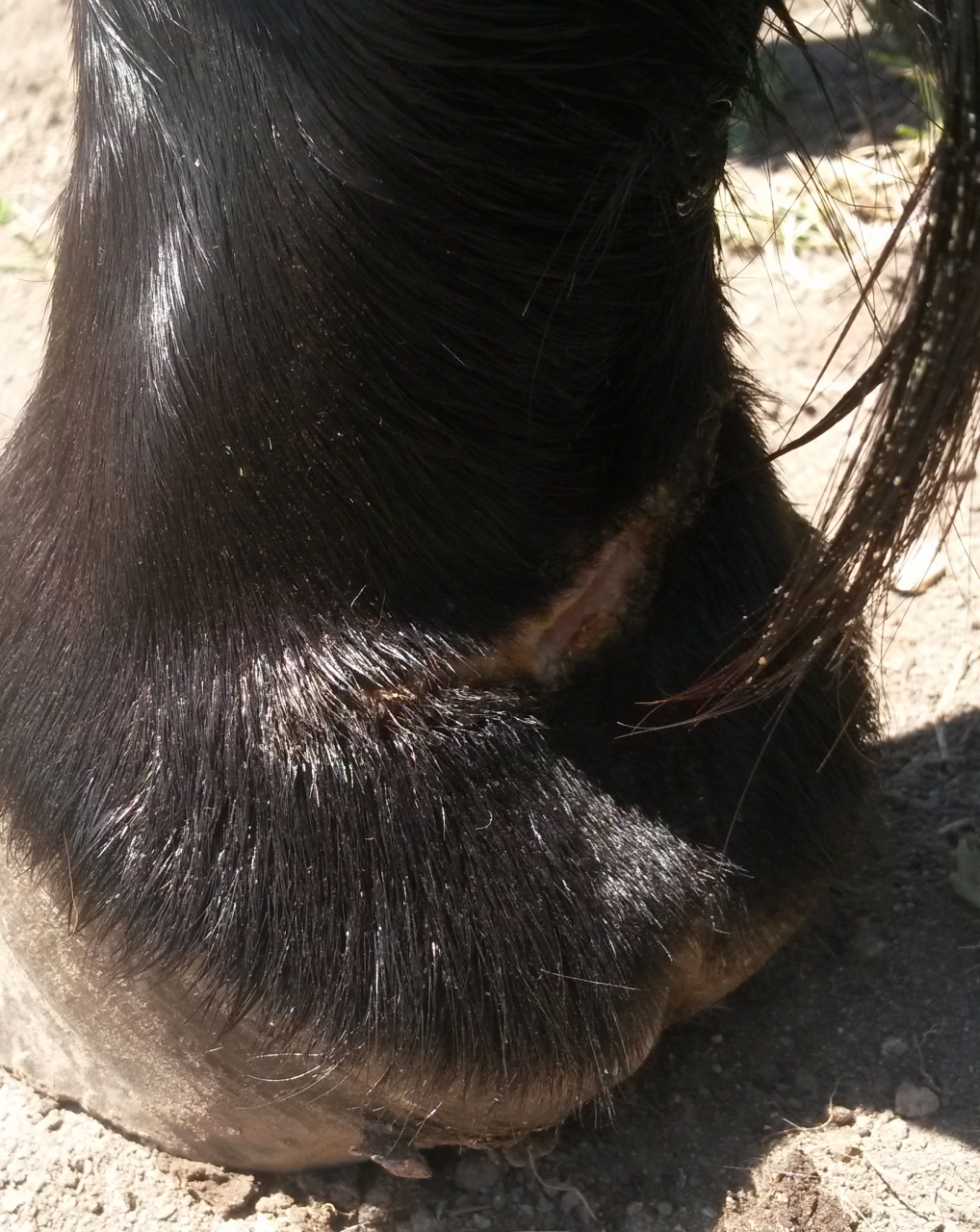 | Dire merci | ![]() S'il te plaît, pas d'argile Merci! Là ça a pas l'air trop moche. Tu peux continuer de bien nettoyer au savon antiseptique et mettre une crème cicatrisante genre Bepanthen, et surtout tenir le box le plus propre possible. Si jamais tu arrives pas à éviter que de la saleté vienne se coller dedans, tu peux lui mettre une chaussette avec les orteils coupé, scotché à la corne du sabot en bas (que sur le devant et les cotés, il ne faut pas scotcher les glomes) et coincé dans une protection ou un bandage de polo en haut. Le tissu laissera la plaie respirer mais empêchera la crasse de passer. Après, pour le miel je n'ai pas d'expérience, donc je peux pas dire |