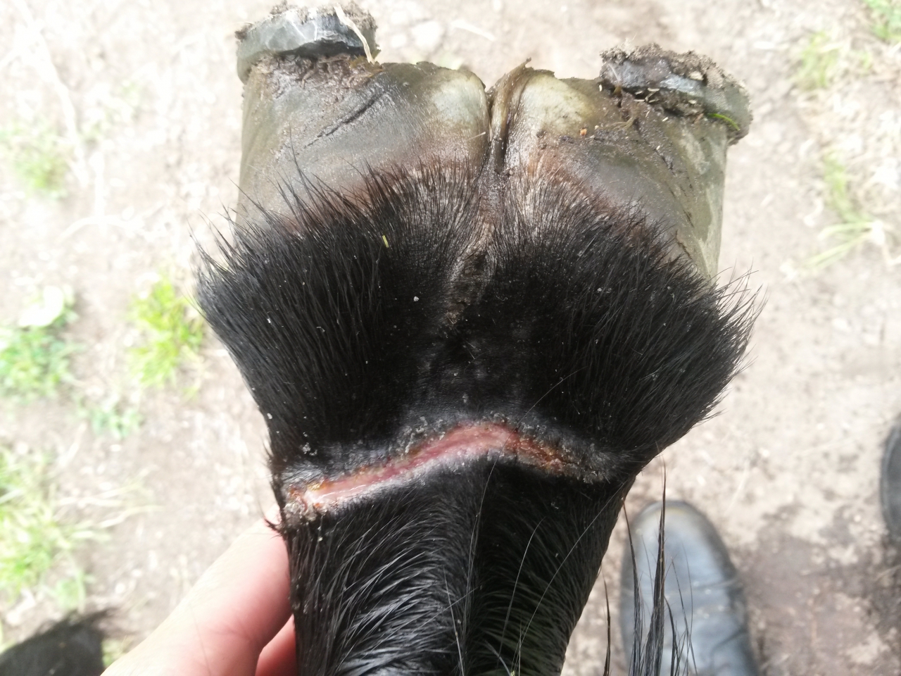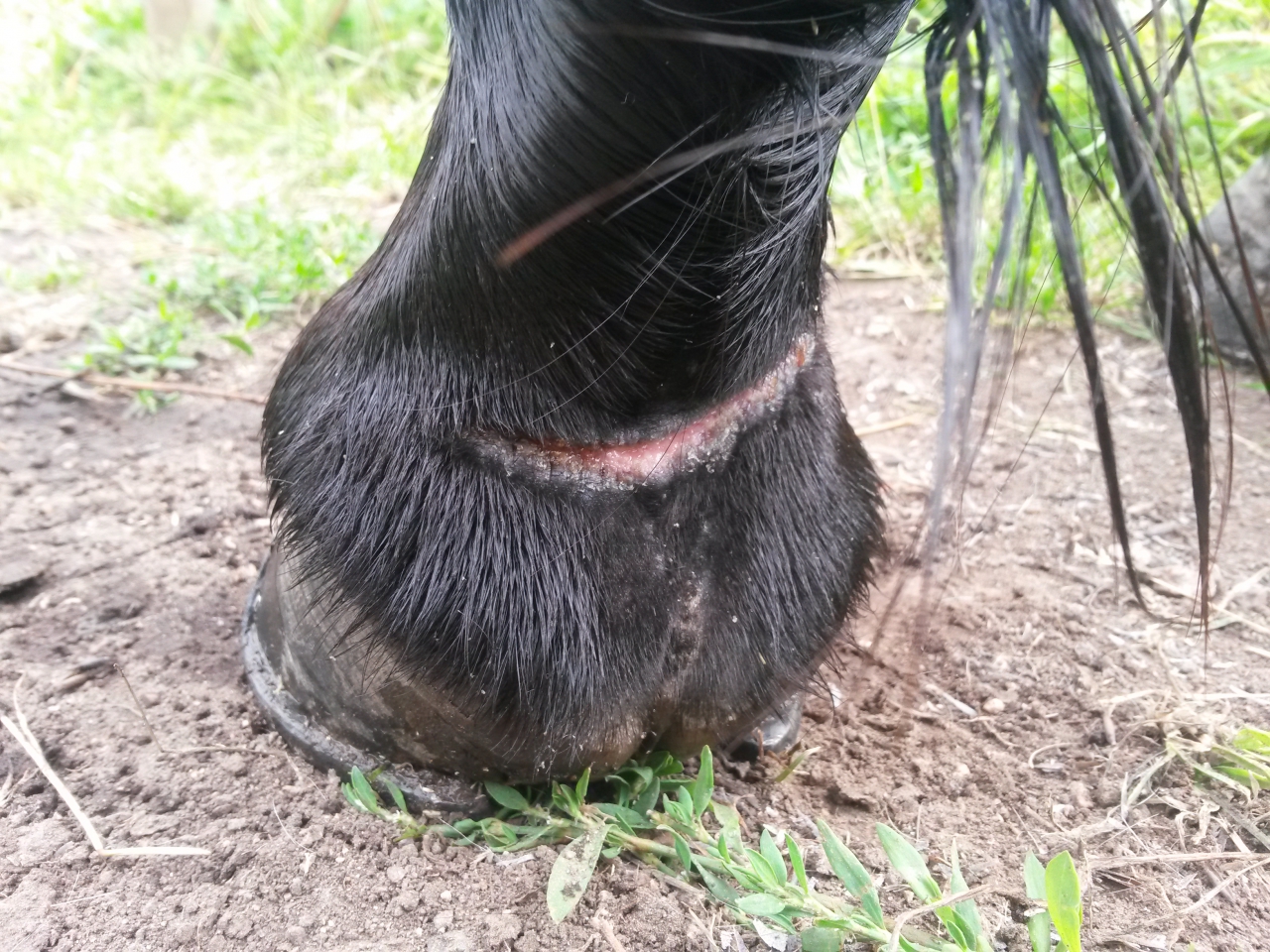 | Dire merci | chez le cheval bonne cicatrisation = cicatrisation lente. Je ferai lavage à l'eau puis application de TM calendula. Si l'éleveuse veut faire avec ses produits un bain de sabot un jour avec Bétadine jaune dilué et un jour avec eau de javel dilué 10mn. Puis application de cothivet avant de faire un pansement sec si ca suinte de trop les premier jours et que ca colle au pansement on peu appliquer un peu de Biafine ou de vaseline sur la compresse mais il faudra vite en venir a la compresse stérile seule car elle laisse respirer la plaie. si pas de pansement argile ou onguent antiseptique en couche épaisse (les traitement pour gale de boue sont très bien ) |