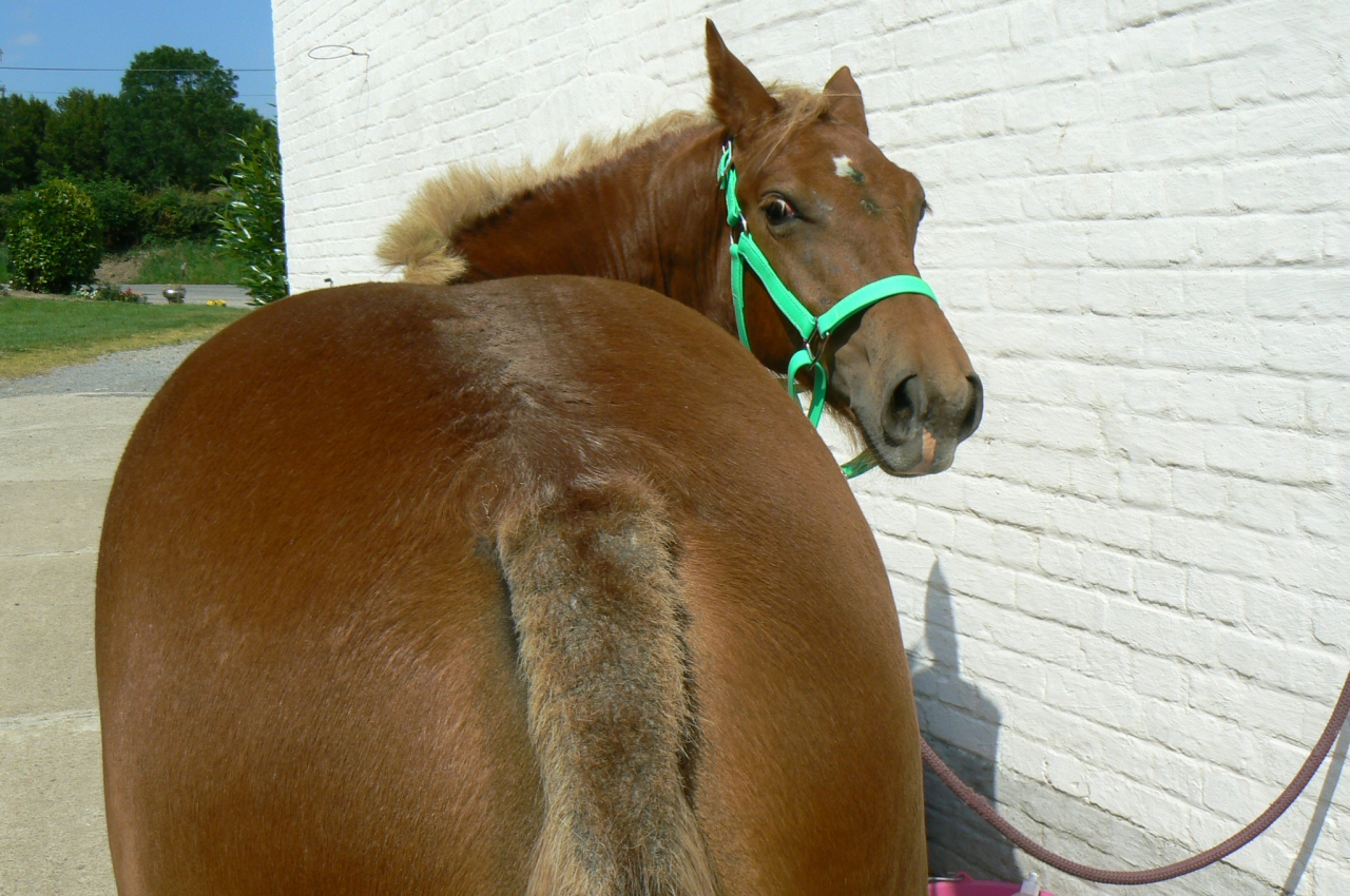 | Bonjour, Ce matin, nous avons remarqué que Théo se gratte beaucoup ou il peut (a ce moment, un poteau en bois ... ) et s'est arraché des crins. Il a a peine deux ans ... Se pourrait-il que ce soit la dermite ? [ Il voit le vétérinaire bientot (lundi) mais je voulais avoir votre avis ] |
