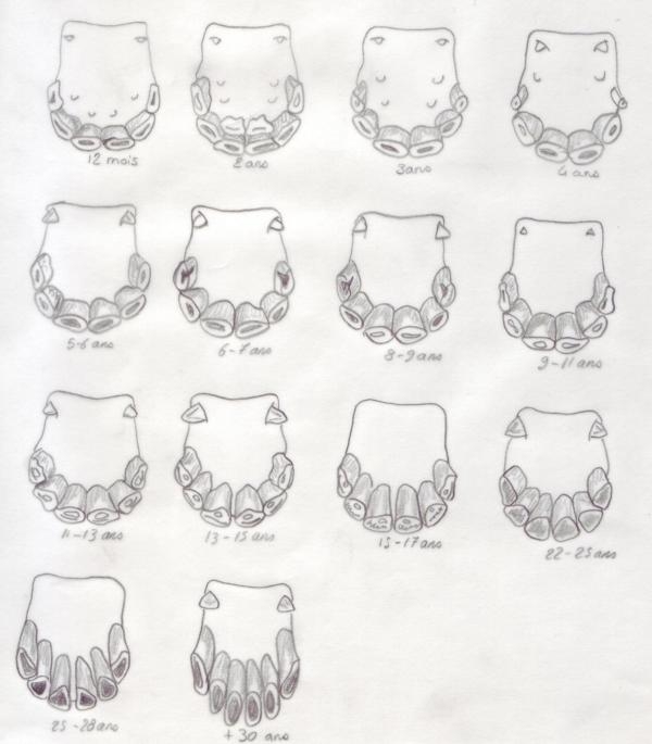 petite question @ARS : ce sont tes dessins? je savais que les crochets tombaient vers 13/15 ans, mais sur ton croquis idem à 25, Ça retombe à 25? (ca fait un moment que je ne me suis pas penchée sur les tables dentaires mais ça m’intéresse!) |