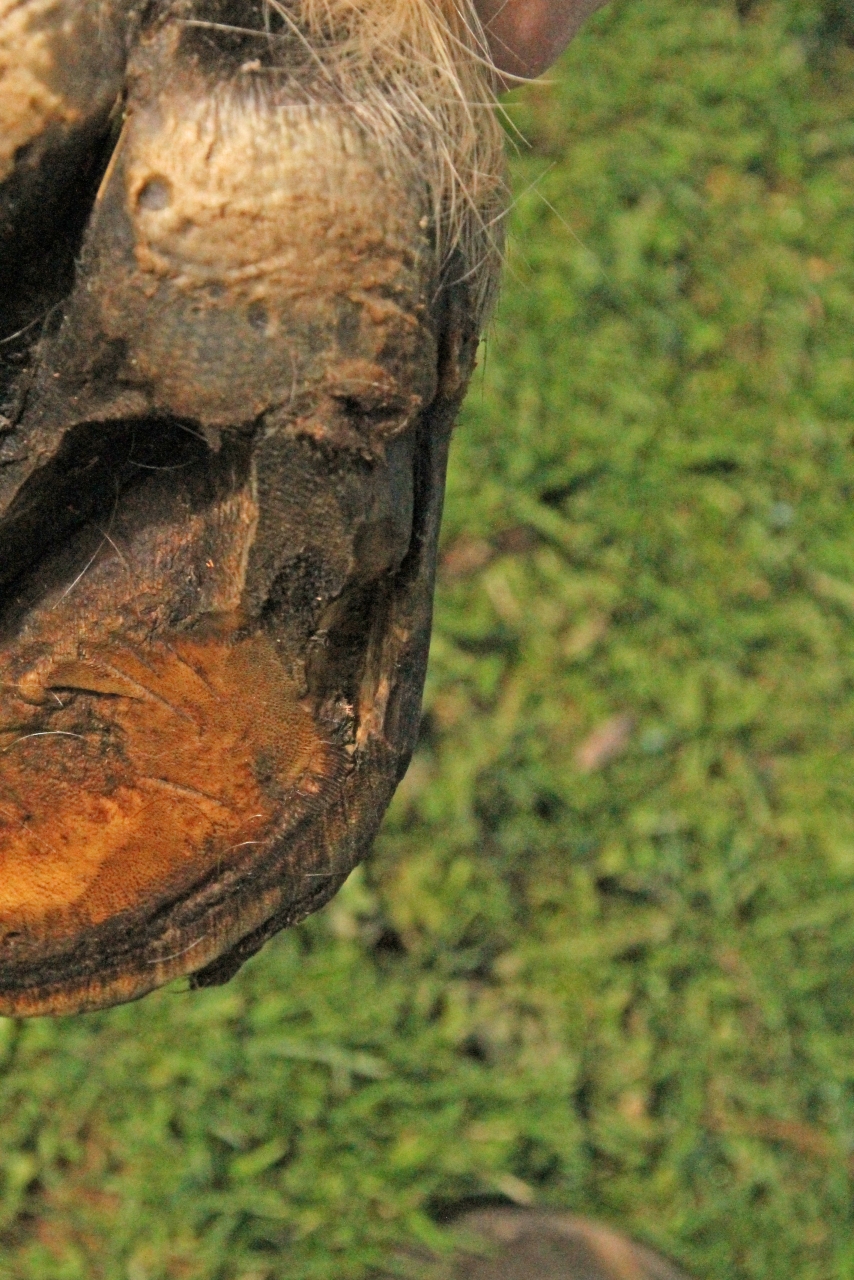 | Dire merci | A mon avis c'est plutot la seime qui la fait douiller vu qu'elle remonte en couronne. Et Ca va pas repousser comme il faut tant qu'il y a appui et donc mouvement. La solution la plus simple est de ferrer le temps que ça repousse suffisement (une ou deux ferrures) et ça va la soulager très rapidement. Sinon bien parer en remontant suffisament, au risque de devoir aller très loin, que ça soit pas hyper efficace et encore douloureux un bon moment. |