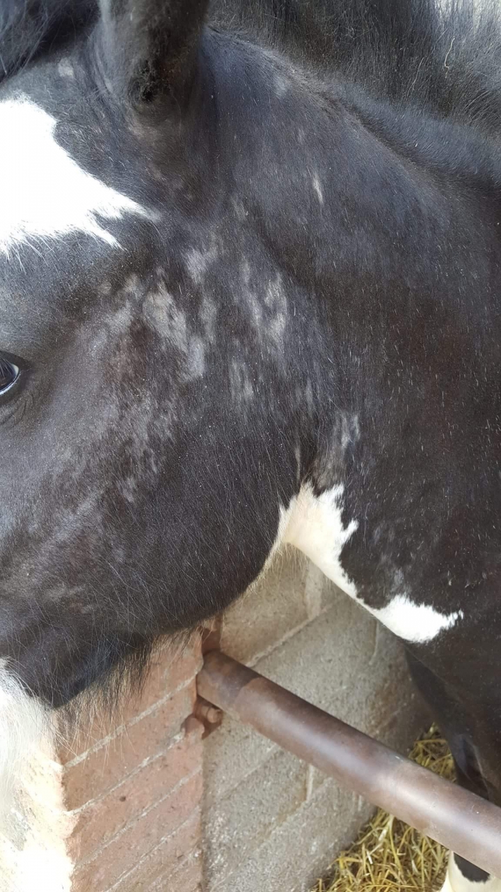 DéconnectéDire merci | Bonjour, Un poney de club vient d'arriver, et nous avons aucune informations sur lui. On peut voir qu'il a des plaques au niveau de la tête et de l'encolure où il lui manque des poils. Ça n'est pas circulaire, et cela n'a pas l'air de le démanger. Je ne pense donc pas que c'est la teigne. (Je me trompe peut être) Je vous joint une photo pour que vous puissiez le voir. ![]() Si vous pensez savoir ce que cela peut être, n'hésitez pas à m'envoyer un message. Et j'aimerais également savoir si c'est contagieux? Si oui avec quoi je peux désinfecter ses affaires qui vont sur d'autre poney, comme filet, sangle etc... Pour les brosses j'ai lu sur un autre forum que l'on peut désinfecter avec de l'eau et de la javel donc pas de souci. Merci de votre aide. |