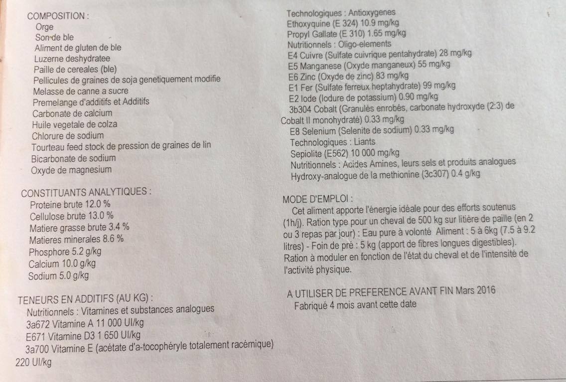 DéconnectéDire merci | Bonsoir, J'aimerai des avis par rapport à la composition des granulés des écuries de ma jument ( CF photo ) Je ne suis pas très connaisseuse en nutrition, et j'aimerais savoir si elle a besoin de compléments etc. Elle a 4 ans et elle a été très carencée jusqu'a l'an dernier, elle mange un peu moins de 3 litres par jour, elle a 2 rations de foin par jour et passe ses journées dans un pré avec un petit peu d'herbe. Merci d'avance de vos réponses Bonne soirée ![]() [url=https://www.1cheval.com/membre/services/photos/images/226570.jpg" class='zoombox zgallery148141' ] ![]() [/url] Message édité le 08/09/17 à 22:21 |