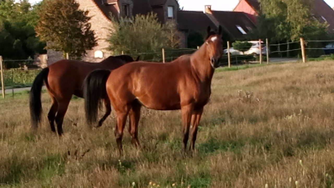 | Dire merci | Bonjour tout le monde ! Je suis enfin décidé à faire pouliner ma jument et j'aurais besoin de vos conseils: tout avis est le bienvenu. Alors j' ai une jument anglo-arabe que je compte croisé avec un pure race espagnol afin d'apporter de l'ossature et de la taille car elle est petit pour une anglo-arabe (1m53 seulement). J'ai également choisie cet etalon pour ses allures, ma jument n'ayant pas une locomotion des plus avantageuse ( le postérieur droit rentre trop sous la jument). Le future poulain est destiné au loisir particulièrement dressage car je ne suis pas une adepte du cso ( bon j'avoue j'ai la trouille à partir d'un certaine hauteur ).Du fait que c'est la première saillie pour ma juju et mon premier poulain je voudrais avoir votre avis quand au suivirent vétérinaire à adopter. Je sais qu'il me faudra faire un test mérité car se sera en monté naturelle. Le vaccins rhino est-il obligatoire ? Y a-t-il des échos à faire avant la saillie (ovulation peut être ?)? Quand dois-je faire le test mérité ? On m'a parlé d'un mois avant la saillie mais on m'a également dit que je pouvais le faire avant du moment que la jument si elle est testé négative n'aille pas au paddock ou en pâture avec d'autres chevaux. Qu'en pensez-vous ? Comment se passe ensuite le qui le veto pour la suite ? Je prendrai tout ce que vous pouvez me dire et si vous aviez des idées de prix quand aux intervention vétérinaire sa m'aiderait beaucoup également. Merci à tous pour vos futures réponses. Et bonne journée ou soirée selon le moment où vous lirez ce message. PS: je vous est mis deux photos de la jument. ![]() ![]() |