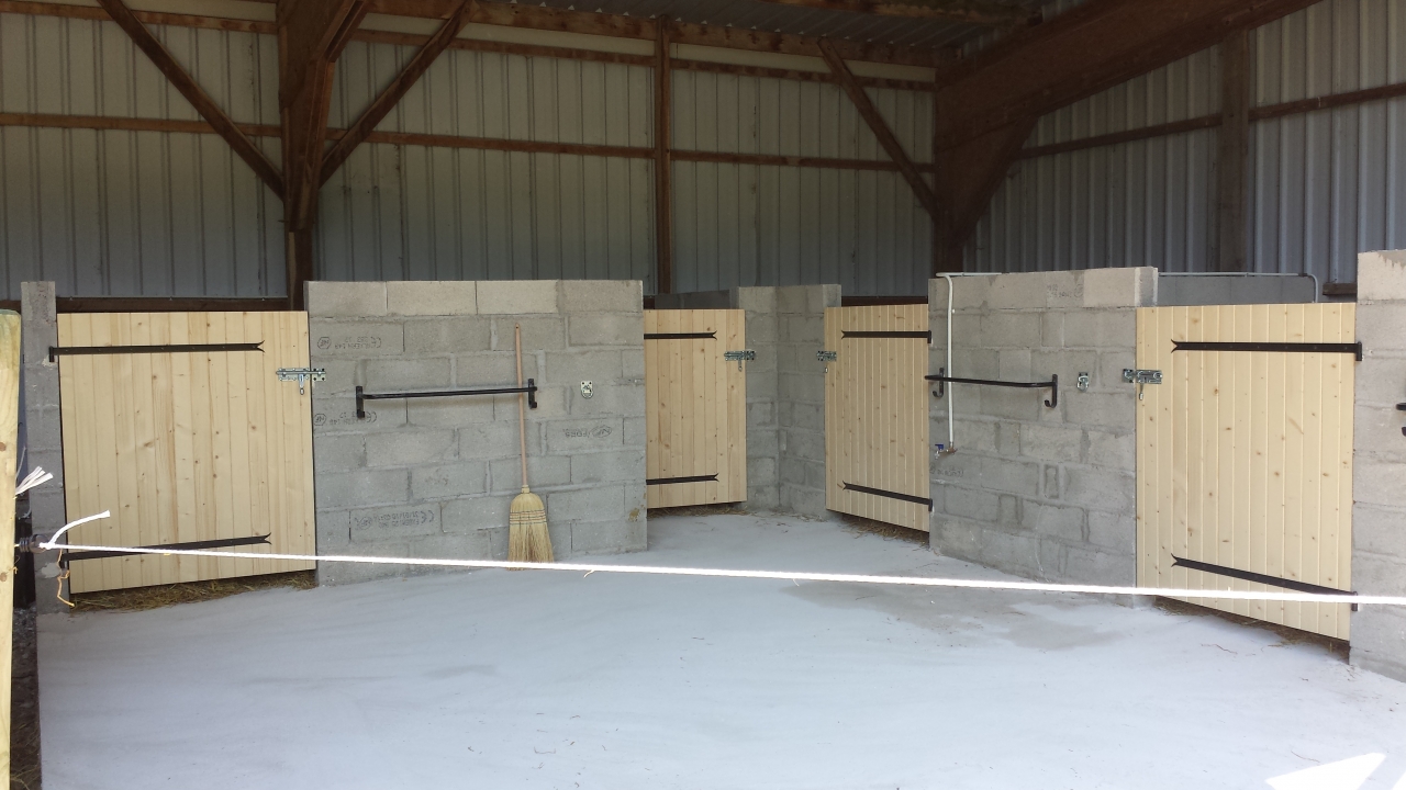 | Dire merci | Pour avoir eu les 2 : - box bois pendant 10 ans (ils avaient 5 ans quand je suis arrivée), si je n'avais pas déménagé , il aurait fallu refaire toutes les parois : entre le bois qui a gonflé à certains endroits (exposés extérieur), et les juments qui l'ont déformé à force de se gratter le cul dessus à d'autres endroits.... les planches s'étaient décalées, ça commençait à me stresser. - je suis arrivée dans ma nouvelle maison il y a 6 mois , j'ai pris un maçon pour monter des box en parpaings, après avoir parcouru les catalogues de box bois : ça ne m'a pas coûté plus cher.... juste que, comme il y avait la dalle à faire, on a bien prévu la semelle pour les parpaings, ça ne bougera pas !!! Jai un seul regret : le fond des box, c'est mon fond de hangar : 4 rangs de parpaings puis bardage acier : bah c'est moins fiable que le parpaing hein ! Sans hésiter entre bois et parpaings : je cite parpaings ! Un de ces 4, pour faire joli, je ferais un crépi par dessus, ce sera superbe ! |