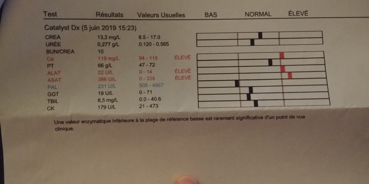 DéconnectéDire merci | Bonsoir, Je m'adresse à vous car j'ai un souci avec mon poulain de 10 mois. Voilà 15j, 3 semaines qu'il ne reprend pas d'état, il a perdu un peu de poids (on voit ses côtes mais reste charnu sur le reste su corps). Au début je mettais ça sur le dos d'une poussée de croissance puisqu'il avait beaucoup grandi d'un coup, j'ai augmenté sa ration de grain( il est au pré donc il a l'herbe en plus) et toujours pas génial, pas d'amélioration fulgurante. Cette semaine j'ai appelé la véto pour une prise de sang et les résultats sont pas tops . Elle pense à l'ingestion d'une mauvaise herbe mais au cas où envoie la séro en analyse plus poussée (lepto, piro..). J'ai perdu mon 1er cheval il y a 2 ans sans qu'on ait réellement trouvé la cause mais il y avait atteinte hépatique (à l'époque les sérologies lepto et lyme étaient +), la myopathie et rhinopneumo avaient été écartées. En attendant les résultats je stresse. Qu'en pensez-vous ? Avez vous des pistes ? Il n'y a aucun autre symptôme : pas de fièvre, il a du jus, de l'appétit, se déplace... En attendant j'ai un détoxifiant prescrit par la véto à lui donner tous les jours pendant 6j. Merci ! ![]() ![]() Message édité le 05/06/19 à 21:35 |