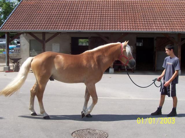 | Dire merci | J'ai quelques photos des étalon qui sont dans cet élevage qui est effectivement de très bonne qualité... Voici Nil C, étalon importé d'Italie qui a très bien produit dans son pays natal. La photo n'est pas génial mais c'est tout ce que j'ai, c'était lors de la comission étalon de Février 2007. ![]() Ensuite c'est Oul Anbator qui a fini 3ème au championnat d'europe de la race haflinger en juin 2007. ![]() Puis il y a Albany, j'ai pris la photo lors de l'épreuve de label loisir en septembre 2007, où il a d'ailleurs fait "élite" si je ne me trompes pas. ![]() ![]() Et enfin il a un étalon nommé Nebrasca, je n'ai pas de photo mais lors de la comission étalon il a montré un très bon caractère, très calme et bon travailleur. Il a également été importé d'Italie. |