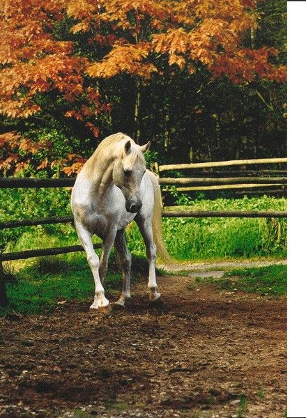 | Dire merci | Un étalon que j'aime beaucoup (et que j'ai un peu connu) mais qui est malheureusement décédé : Kniazj (pur sang arabe)![]() J'ai un fils de lui ![]() ![]() Mais si j'avais une jument arabe à faire saillir, je mettrai un fils de Kniazj, Nugum Khazan MMN : |