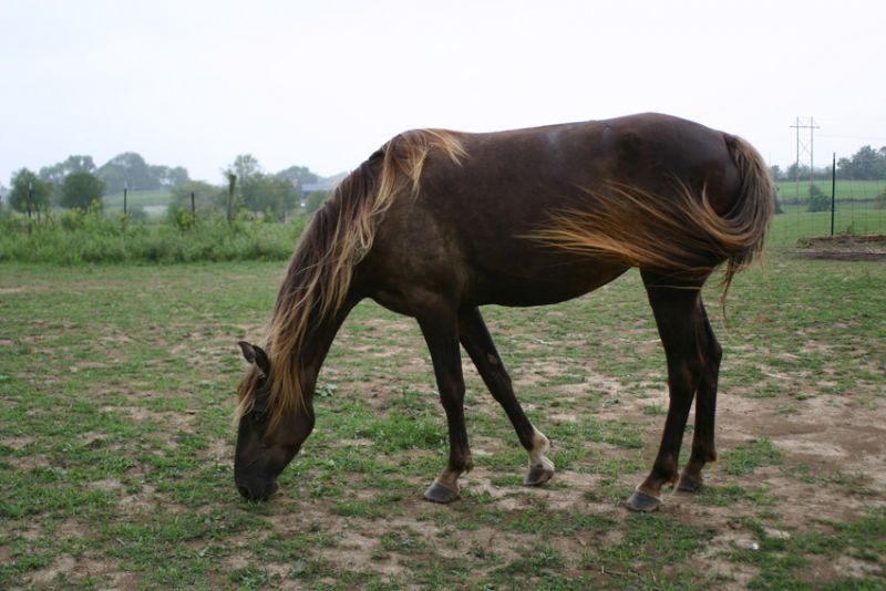 | Dire merci | voici sa mère, chocolat, (puisqu'elle donne EZ à son fils), qui nest pas crins délavés, testée EE crcr (Labogena)... |