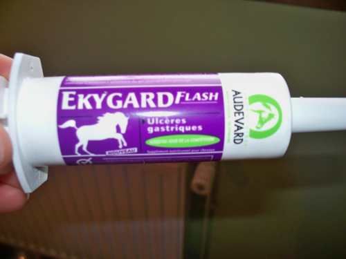 | Dire merci | OK eKygard et non eQUigard. Il contient de l'acide hyaluronique pour la cicatrisation, un gel et des peptides apportés par la guimauve et du bicarbonate. Il faut l'apporter en complément des traitements contre les ulcères (le Gastrogard) et pas en substitution, comme n'importe quel autre pansement gastrique. |