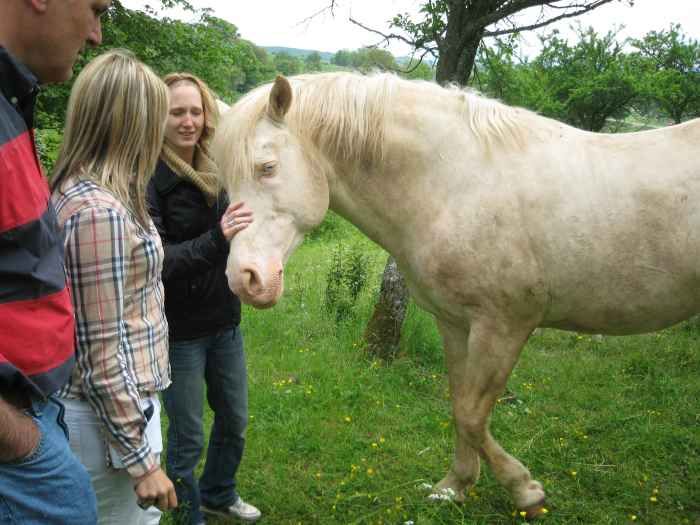 | Dire merci | Bonjour, voilà j'ai une jument en demi pension et le propriétaire veut la faire pouliner; le poulain est pour moi, j'ai choisi le père. La mère c'est Lordorée, de mère ardennaise (et oui on pourrait croire une comtoise)et de père pur sang arabe. Le père que j'ai choisi est cheval crème (13% d'arabe et le reste d'espagnol). Le but pour moi étant de garder un gros gabarit, le père a aussi de l'os (et il est un peu gras sur les photos!), il donne du gabarit à ses petits. Les chaleurs doivent arriver d'un jour à l'autre! je suis pressée! Donnez moi votre avis! (j'espère avoir réussi à mettre les photos....) ![]() ![]() ![]() ![]() ![]() |
