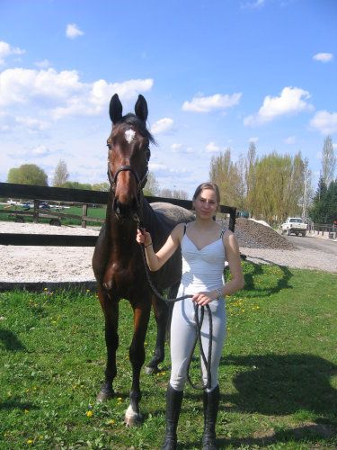 | Dire merci | Sa race est Zangersheide, allé faire un tour sur le site en tapant "Zangersheide puis sur j'ai de la chance sur Google" Le Papa est Contact, sa mére noblesse van de baut (je sais pu l'orthographe) et dans ses papier figure quidam de revel. Il aurait du etre envoyer au fences si je l'avait pas acheter! Il ne pourrat pas etre agréé en tant que Zangersheide car ses radio ne sont pas super nickel!Il a pousser comme un champi m'a dit le véto(mais vous devez savoir se que sa fait un coup de coeur) J'ai loupé les M&A; il n'etait pas encore a moi. Il aurait eu tout ses chances.Je vais aissayer sur qualif des classiques mais on sais jamais... Je veux le laisser entier parceque1) il est sympa 2)il y a un coté "petit con" que j'ai pas envi de perdre 3)c'est une opération douloureuse (tout étant relatif) qui n'est pas un passage obligé 4) côté estétique c'est sans comparaison (note en dressage)!5)Quand il est au travaille il ne regarde même pas les juments. Je ne monte pas un cheval parce qu'il est simple mais peut être au contraire, sa me pousse a aller encore plus loin. Quit à me ramasser 5 fois dans la même séance... le Synthol est à côté On a fait beaucoup de manipulation et on a tourné en longe, une sorte de prédebourrage a 2ans avant de retourner au parc, comme ça on a pu aller doucement.(Je ne débourre pas en 3jours) ![]() |